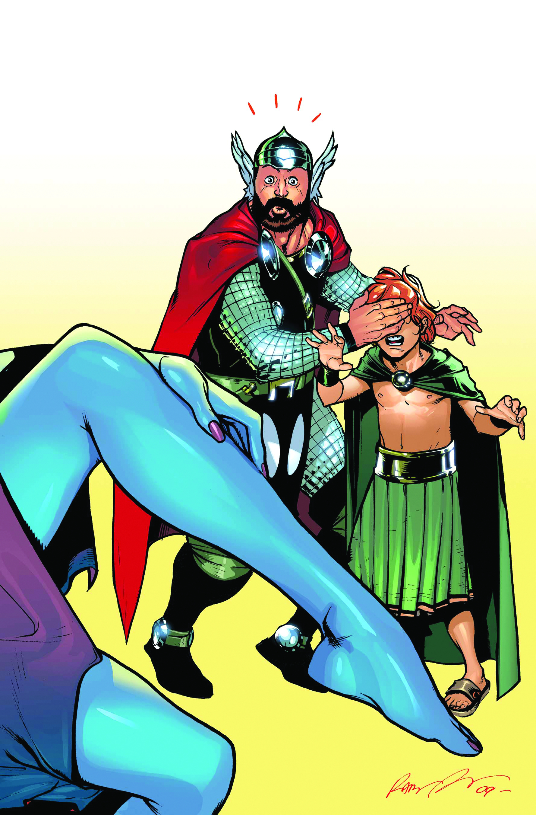 "The Replacement Thor" continues as the Mighty Hercules, wearing the Thunder God's togs and towing a most unexpected guest star along to provide the pyrotechnics, descends to mysterious Svartalfheim to save the day from a new threat among the Dark Elves. But everything changes when the wicked Elven Queen turns out to be as languorously lovely as she is lethal! What Would Thor Do? Probably not what happens in this book!