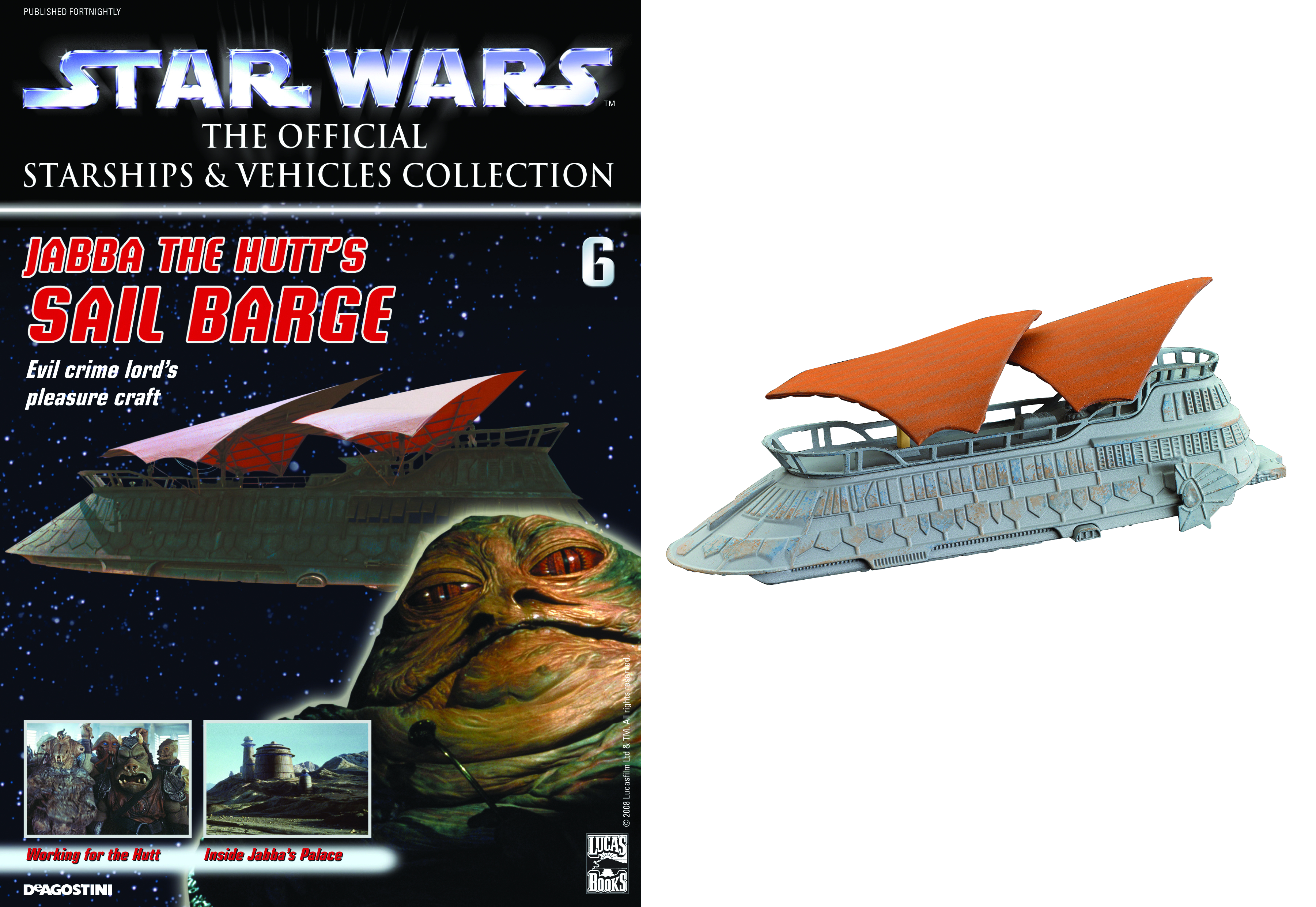 The Star Wars: The Official Starships and Vehicles Collection Magazine brings fans superbly detailed painted metal models of the most amazing starships and land vehicles from George Lucas' mythic Star Wars films. Each comes with a copiously illustrated magazine that relates the history of the vehicle, its pilots or crew, and full technical specifications. Readers will also uncover information on the other fascinating craft from the Expanded Universe of the novels and comics, plus the inside story on the making of the films. Choose from the Star Destroyer (#5), Jabba's Sail Barge (#6), Escape Pod (#31), or the Republic Attack Cruiser (#32)! Copyright 2009 Lucasfilm Ltd. All Rights Reserved. Used Under Authorization.