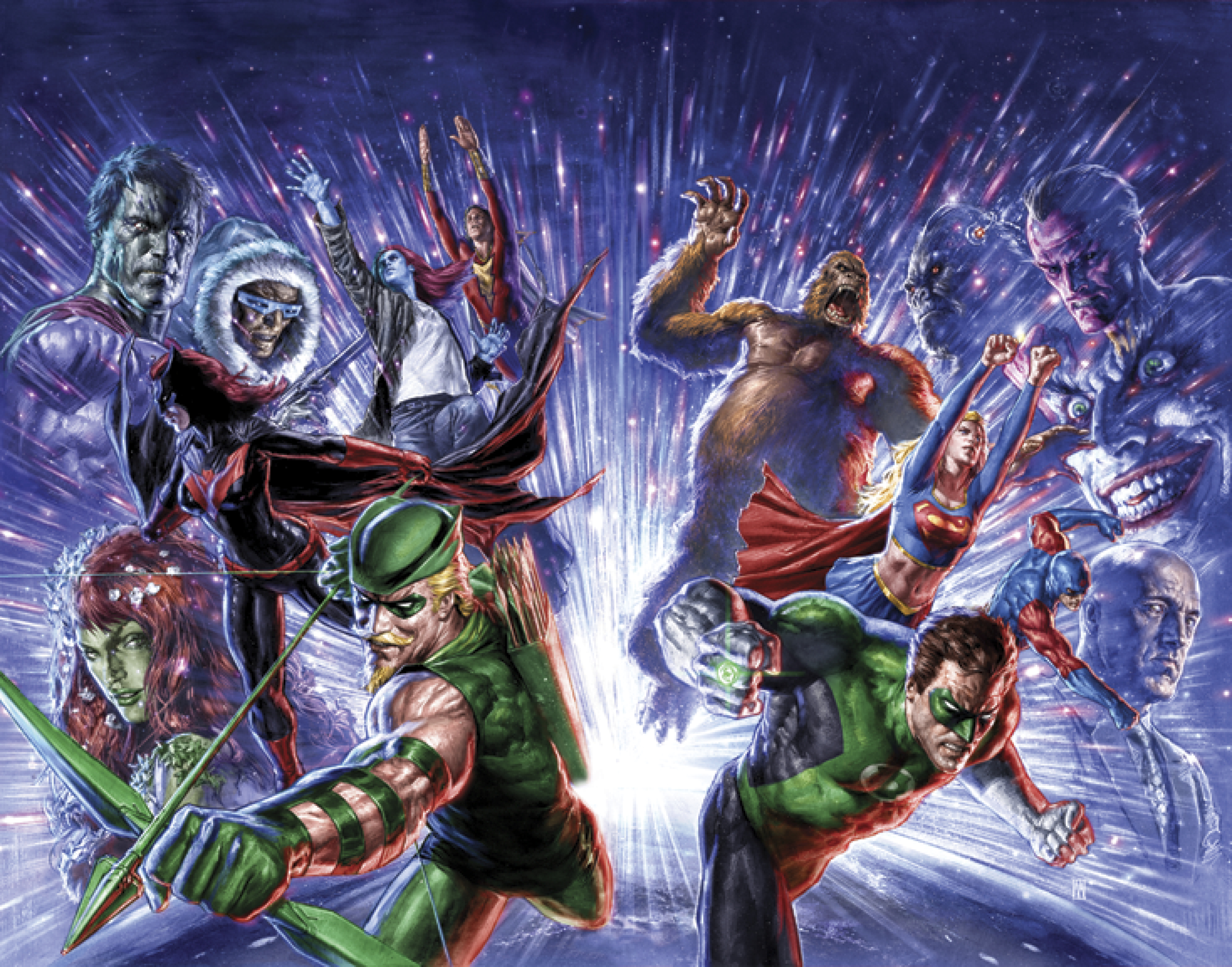 What brings a team together? Justice! Batman and Martian Manhunter have been slaughtered. But he's not the only hero to fall at the hands of villains. The murder has to stop, and it's time to take the fight to the bad guys! Green Lantern, Green Arrow, Supergirl, Atom, Shazam, Congorilla and Starman unite in a cry for justice!