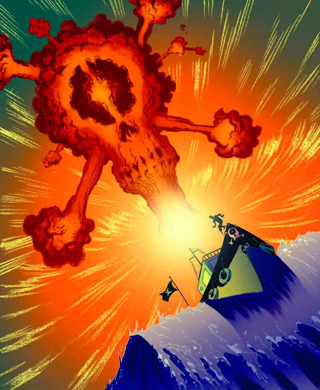 From Marvel Comics. "Wave of Mutilation," Part 2 -- Deadpool has ceased to exist, he's given his good-byes, he's driven his car into the ocean. They'll think he's dead, but he'll sail away... Scheduled to ship 10/07/09. (161)