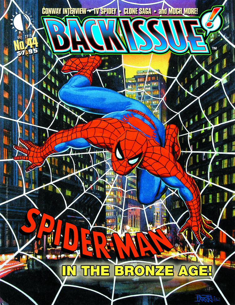 Spectacular Spider-Man, the CBS and Japanese television series, the newspaper strip, the Clone Saga, and an interview with Gerry Conway, plus a vintage cover by Bob Larkin.