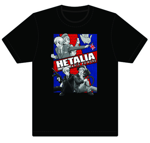 Three of the countries from Hetalia: Axis Powers star on this black t-shirt!