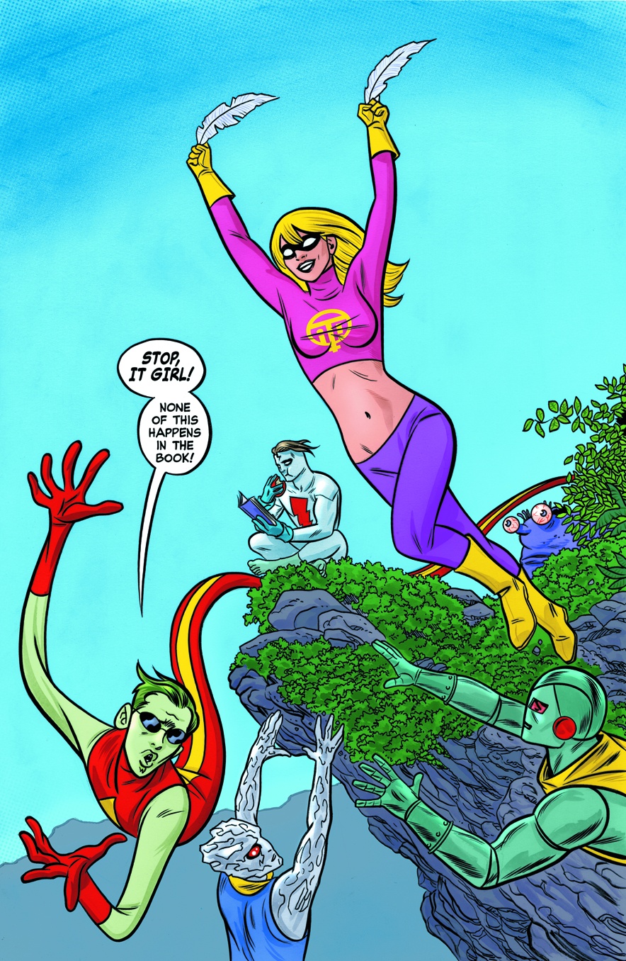 It Girl comes crashing down to Earth. Can she figure out where she's landed before the shadowy figure following behind catches up with her? Also, see what the Skunk's old gang gets up to when left to their own devices! Joins us for world-bending new adventures starring Michael Allred's Atomics!