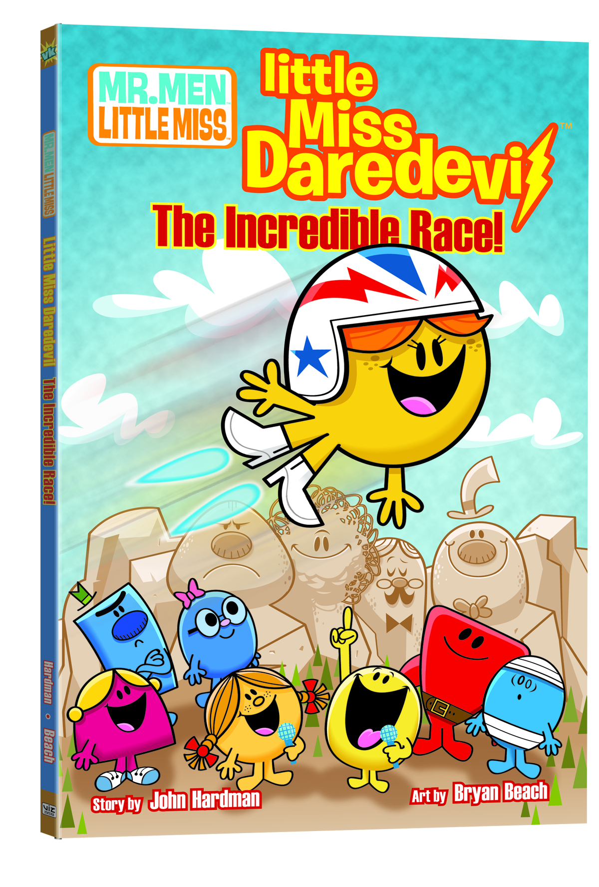 Little Miss Daredevil is competing in the Incredible Race, and she’s in it to win it! Whether scaling to the top of Mount Dillydale or taking a wrong turn and rocketing into outer space, no thrill’s too thrilling for Little Miss D!"