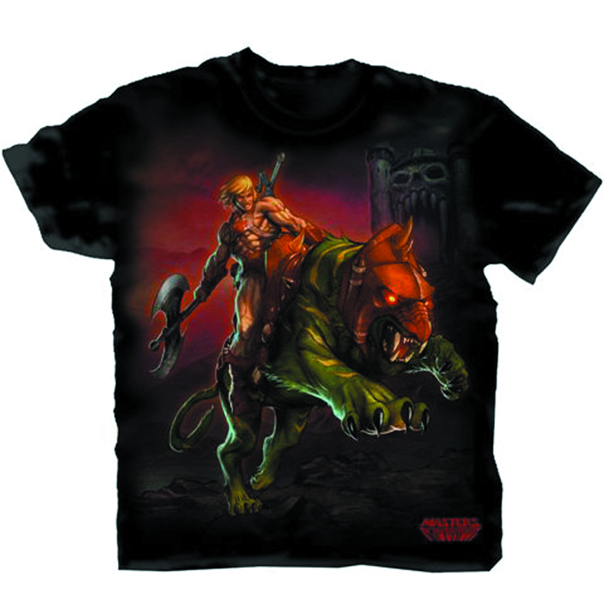 He-Man rides into battle astride Battlecat on this black t-shirt!