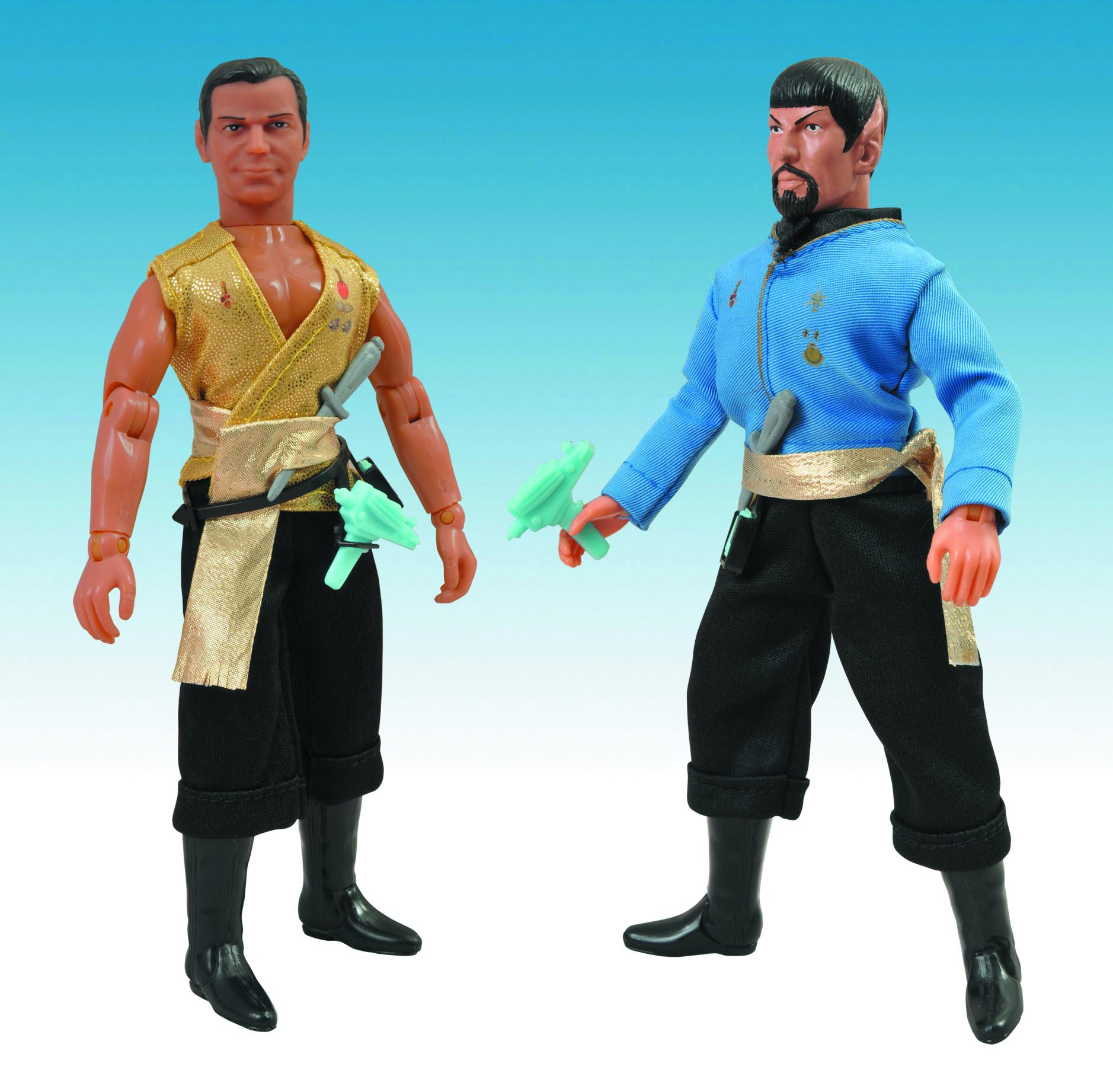 A Diamond Select Release! Designed and Sculpted by EMCE Toys! DST's popular line of classically styled 8" figures returns to Star Trek: The Original Series! This assortment depicts Kirk and Spock in their mirror-universe looks from the classic episode "Mirror, Mirror." Both feature real cloth costumes in the retro 1970s style, as well as episode-specific accessories and facial hair!