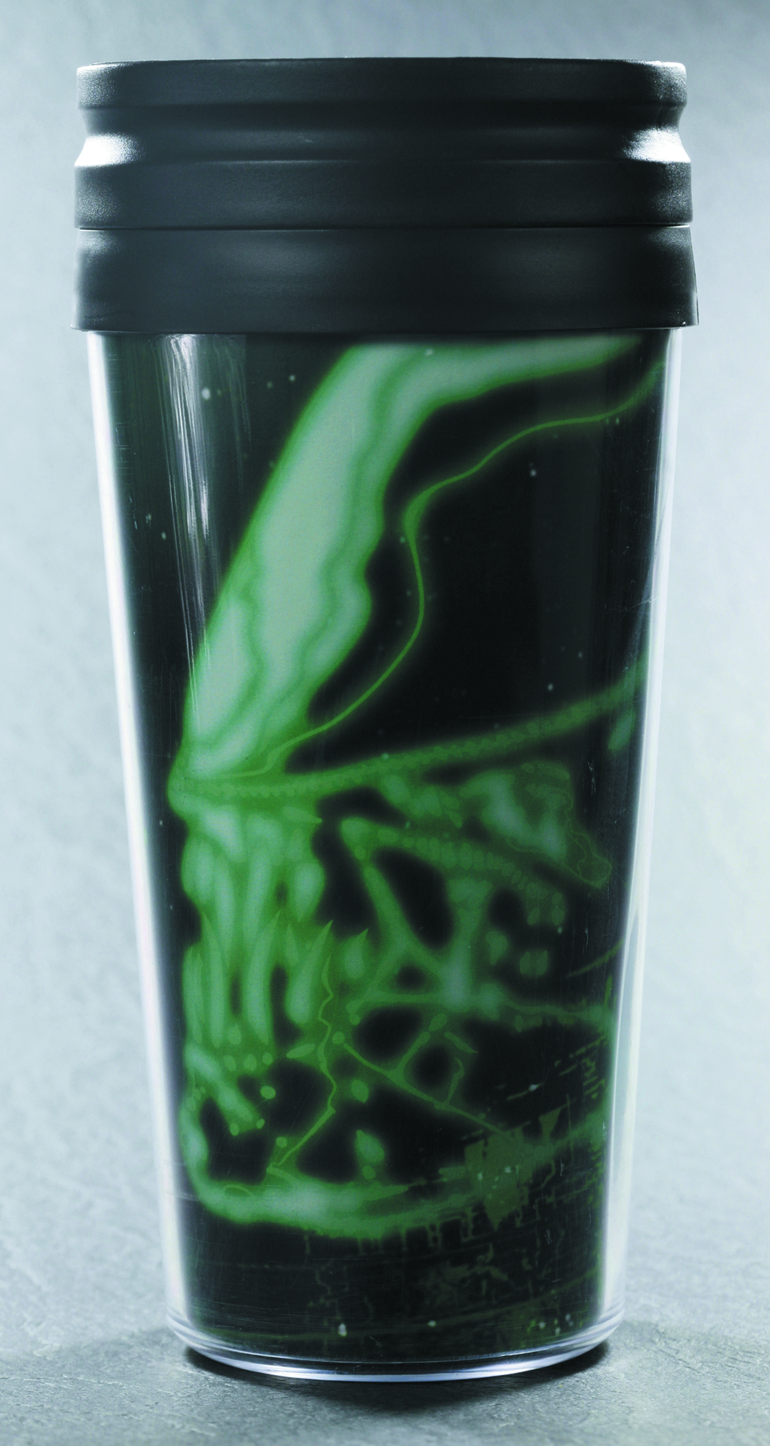 A KOTOBUKIYA Japanese import! The next entries in Kotobukiya's lineup of exciting and functional kitchen items will provide fun no matter where you go... even the darkness of space. After chopsticks and silicone ice trays based on Star Wars, Neon Genesis Evangelion, historical samurai swords, dinosaurs, and animals, we return to the world of Alien with a pair of all new glow in the dark travel mugs. ALIEN GLOWING TUMBLER TYPE B features a huge xenomorph face and the title of the film with a cool technological design. Travel mugs are heat and cold resistant, great for both hot and cold drinks (Note: travel mugs are not tested for the vacuum of space). They even feature screw-on lids with sealable openings to help prevent spills when running from xenomorphs. Use the new travel mugs with Alien silicone ice trays and chopsticks for a full Alien themed dining experience!