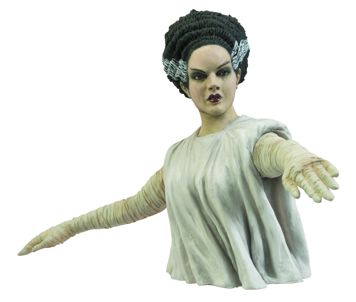 A Diamond Select Release! Sculpted by Gabriel Marquez! The Monster needs his mate! Whether or not you already have DST's vinyl bust bank of Frankenstein's Monster, no monster collection can possibly be without this 9-inch portrait of his Bride. Inspired by the classic film, the Bride features collectible-quality paint and sculpting, as well as a conveniently placed coin slot in back.