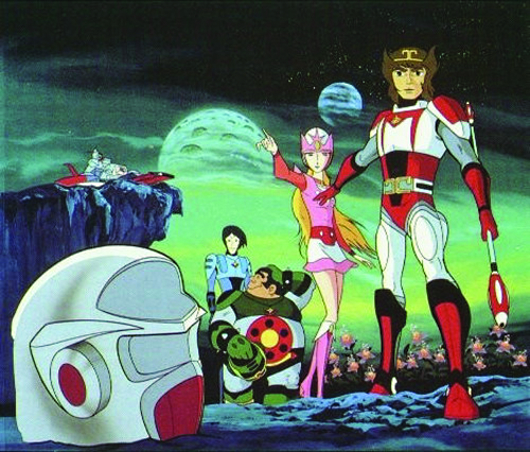 Starzinger is the anime saga dealing with the impending death of the Great Planet, caused by the frailty of its elderly Queen. To prevent this calamity, Princess Aurora of the Moon volunteers to become the new Queen, and sets out on a dangerous journey to the Great King planet to restore the Galaxy's energy, along with her friends and escorts, the powerful cyborgs Jan Kugo/Jesse Dart, Sir Djorgo/Arimos, and Don Haka/Porkos.