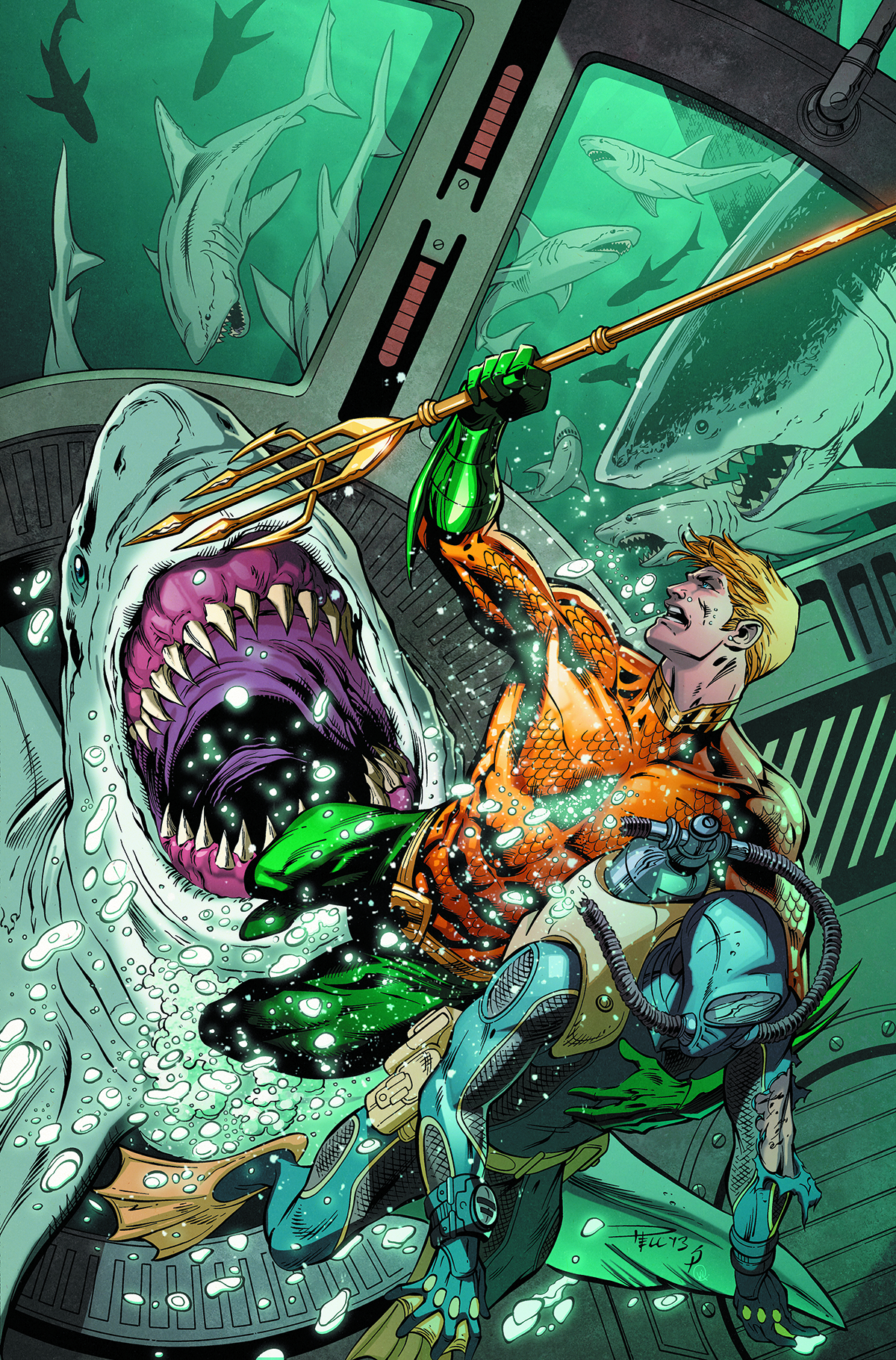 "Sea of Storms" is collected from AQUAMAN #26-32 and ANNUAL #2! Aquaman faces a forgotten Atlantean legend: the Karaqan! A massive crustacean of incredible power, the Karaqan once served the King of Atlantis, but now poses one of his greatest threats. And when Aquaman's trident is stolen, a host of ancient evils is freed from a mysterious portal along with the Greek demigod, Hercules! All this, and Arthur Curry's high school reunion!