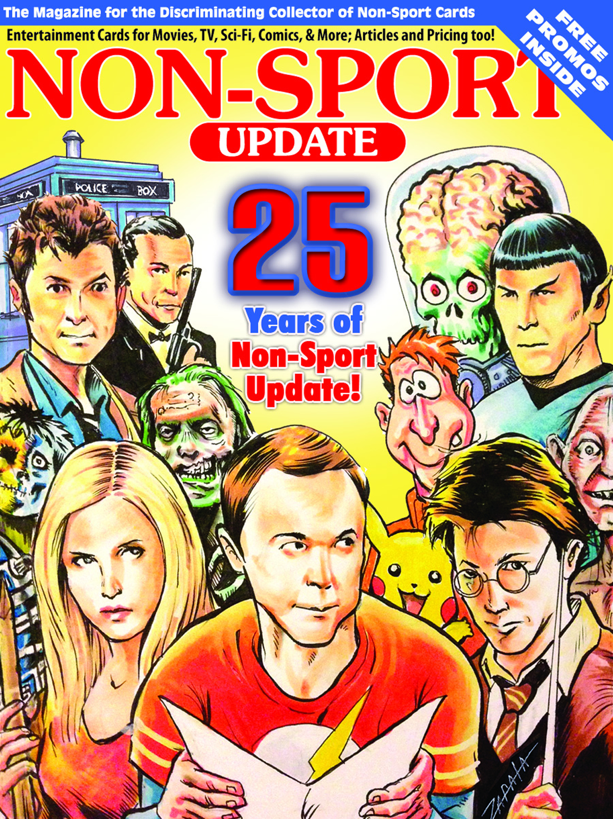 Non-Sport Update's 25th Anniversary issue! This milestone issue features an original artwork cover by Jeff Zapata, depicting some of the most popular non-sport cards and characters of the past 25 years. Celebrate with us and read about some of the highlights of