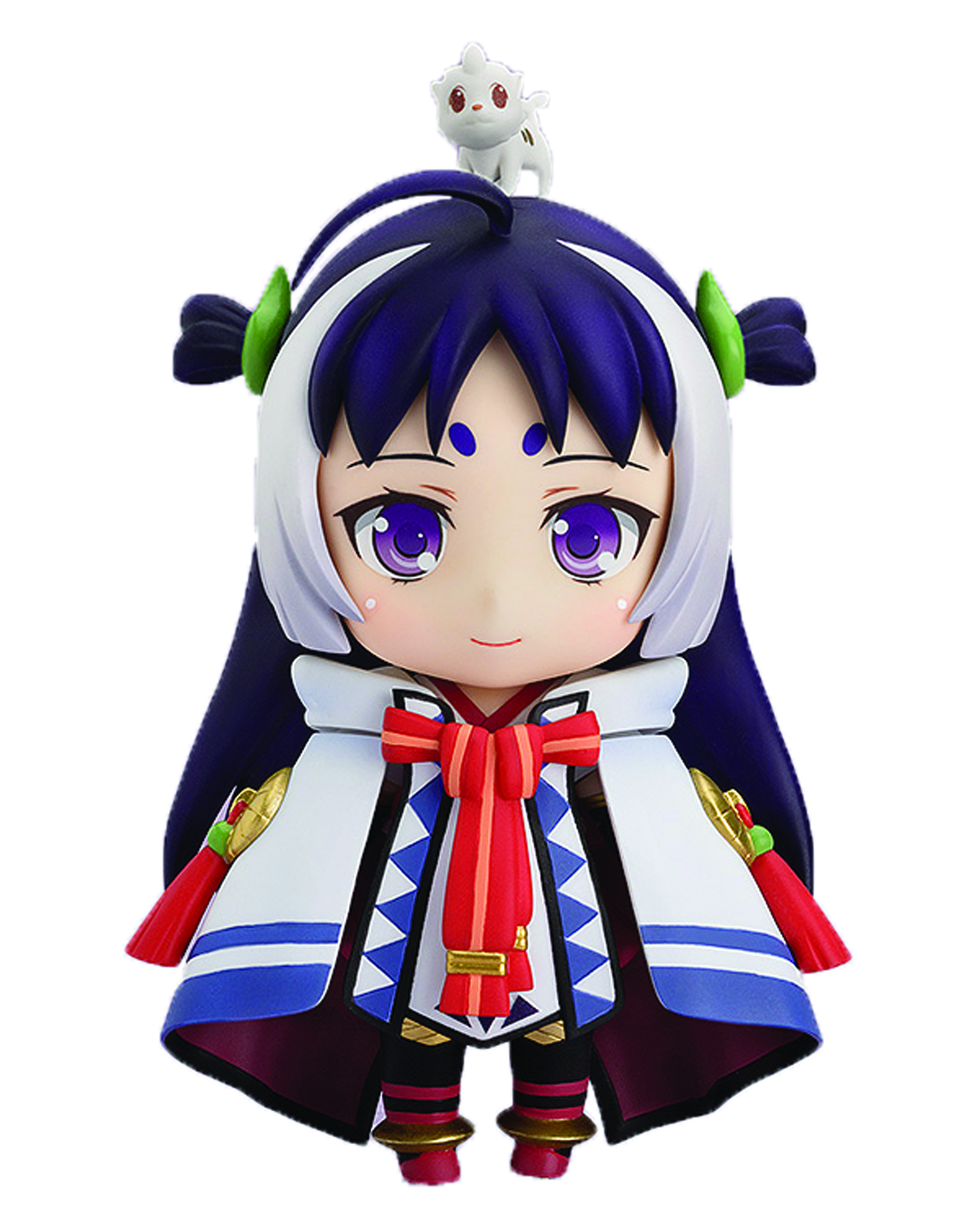 Himiko, the queen of Yamatai-koku! Her extravagant outfit is rather impressive in size even as a Nendoroid, and all the smaller details have been taken into careful consideration. Her outer jacket can even be removed, allowing you to enjoy her Miko Priestess outfit on the inside! She also comes with three expressions including her standard face, a confident smiling face and a face with closed eyes. Optional parts include two different sacred treasures.