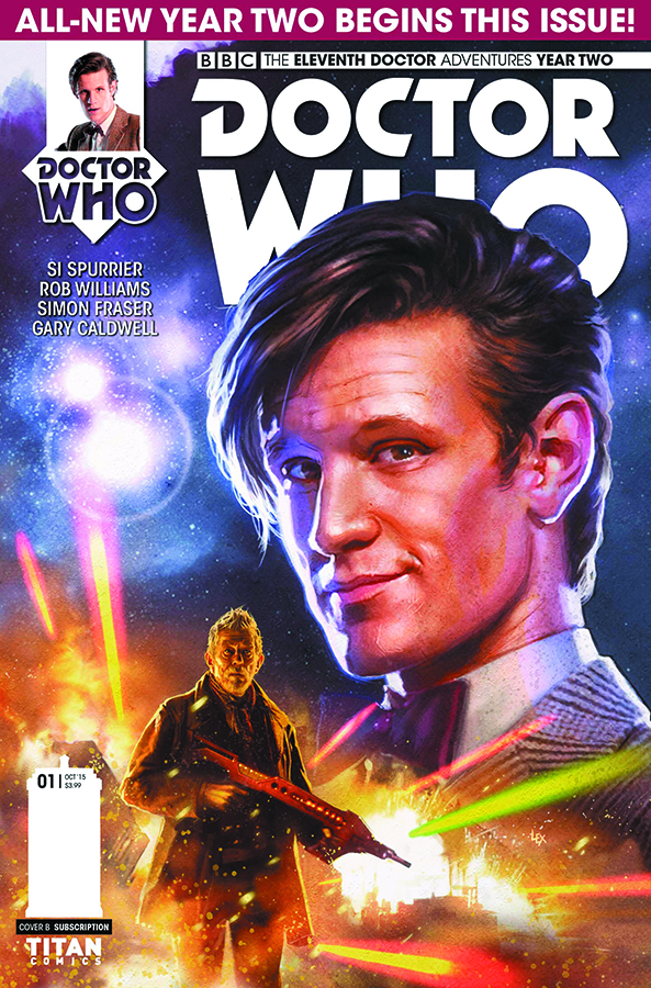 New series! New writing team! New laser-filled, time-mangling, galaxy-sploding dynamic! Accused of a genocidal crime he (probably) didn't (possibly) commit (oh hell, he totally did it), the Doctor and Alice - along with a unique new companion! - go on the run. But extreme hyperviolence-for-hire is hot on their tail, tracking them wherever and whenever they go. With chainswords! It's a race to clear our tricksy Time Lord's name and spare the lives of his friends, with the only answers burnt in the fiery footsteps of the incarnation he can never acknowledge: the War Doctor. Breathless twists abound as the Eleventh Doctor series jumps into a new gear, for a new year!