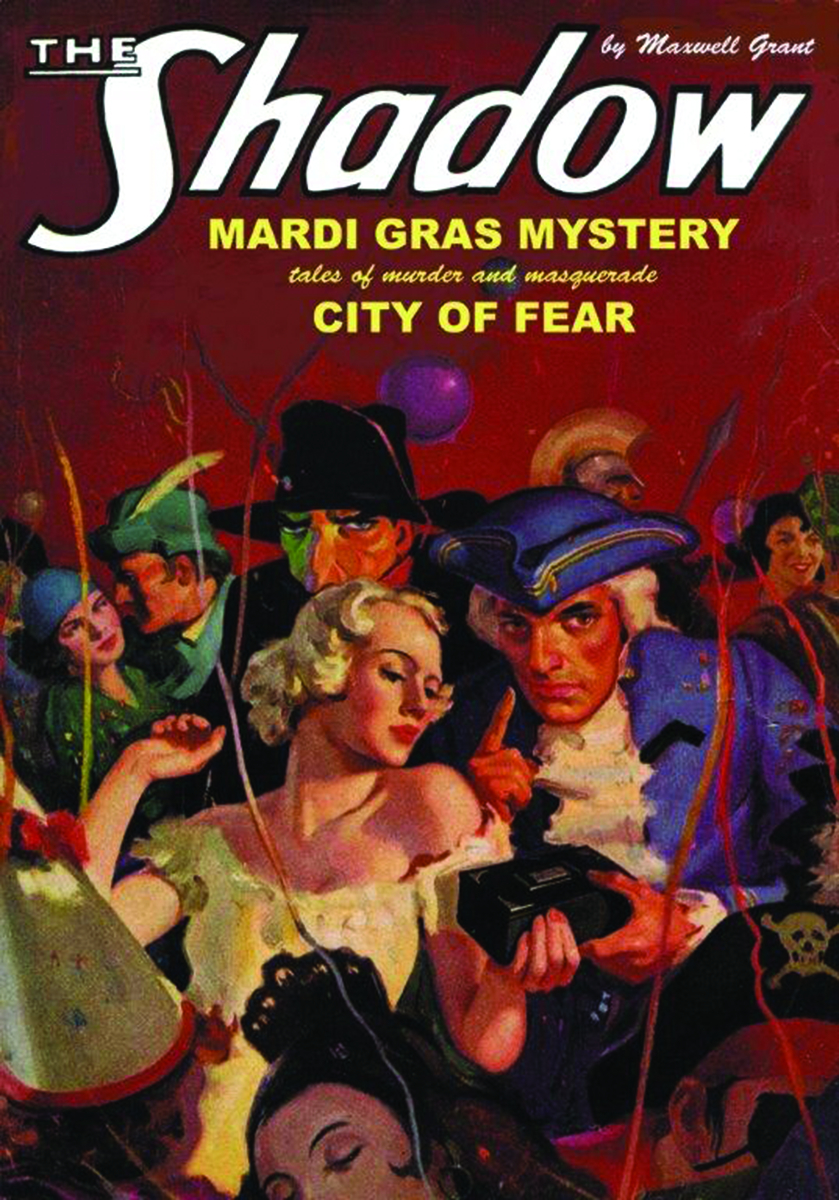 The Dark Avenger becomes immeshed in murderous masquerades in two pulp thrillers by Walter B. Gibson and Theodore Tinsley. First, from colorful carnival festivities arises a baffling puzzle, leading The Shadow to don a series of disguises to solve "Mardi Gras Mystery." Then, the Knight of Darkness journeys to a "City of Fear" to unmask a master of disguise who can impersonate anyone-even The Shadow himself! Which Shadow will have the last laugh? Plus, Anthony Tollin unmasks "The Many Faces of The Shadow."