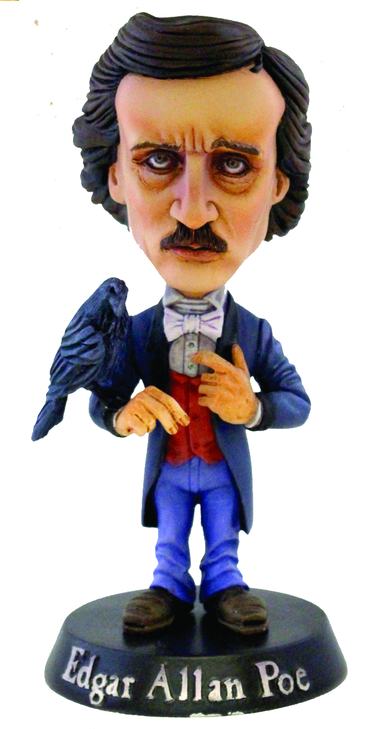 Edgar Allan Poe, one of history's most revered authors, is now eternalized as a hand-numbered, limited edition bobble head. For centuries, Poe has endured the test of time to stand out as one of America's most mysterious, yet influential literary geniuses. And now you can welcome this king of dark romanticism into your humble abode!