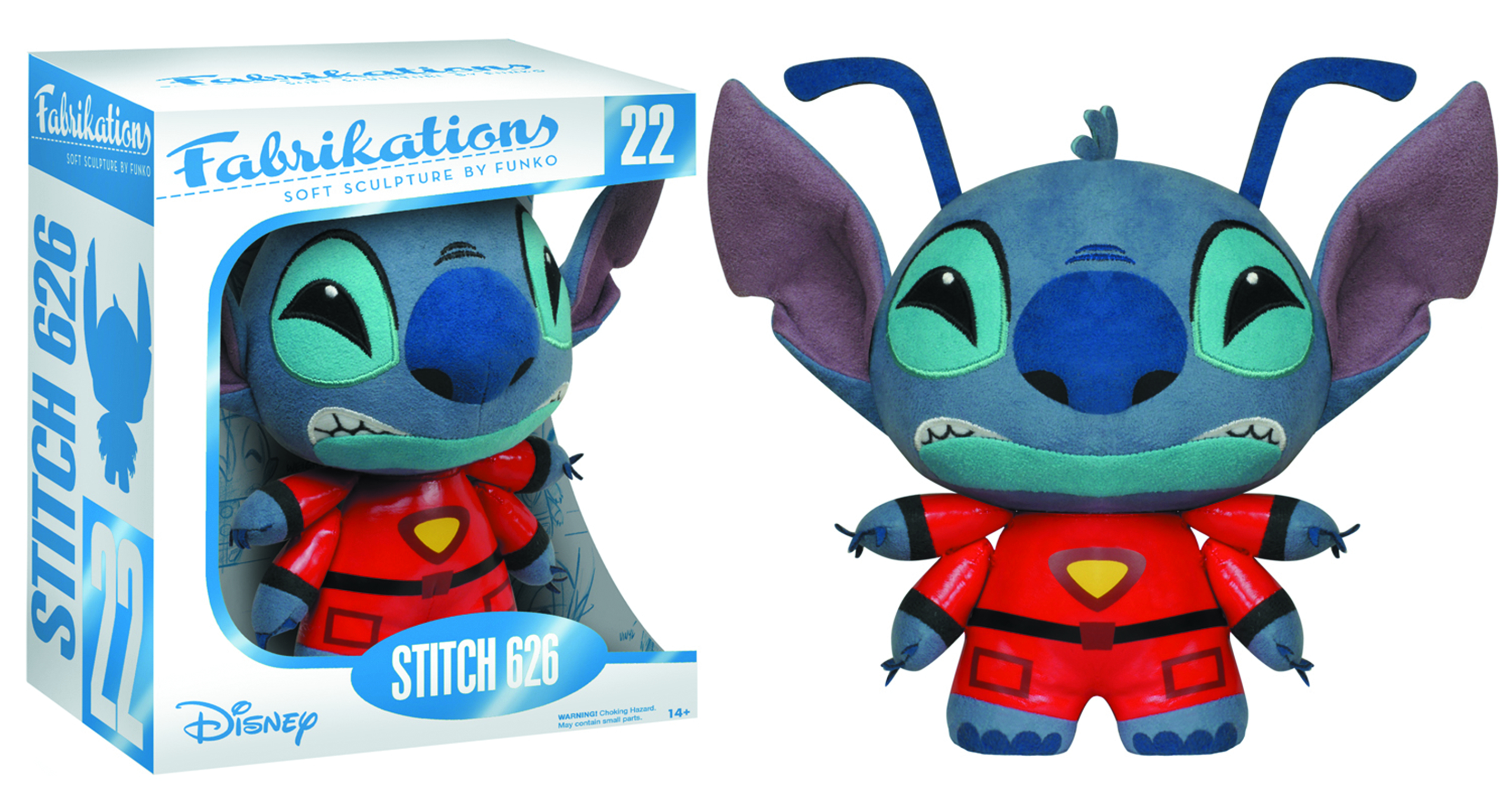 Funko's line of collector figures, the Fabrikations Soft Sculpt Figures, are 6" tall soft sculpted figures that feature a rotating head and vinyl accessories and were created with the collector in mind. Each Fabrikation Soft Sculpture is filled with a dense foam to achieve a high-end lush feel. Two very different kinds of Disney mischief makers join the Fabrikations line with the addition of these 6" tall figures of Maleficent and Stitch 626. Collector box packaging.