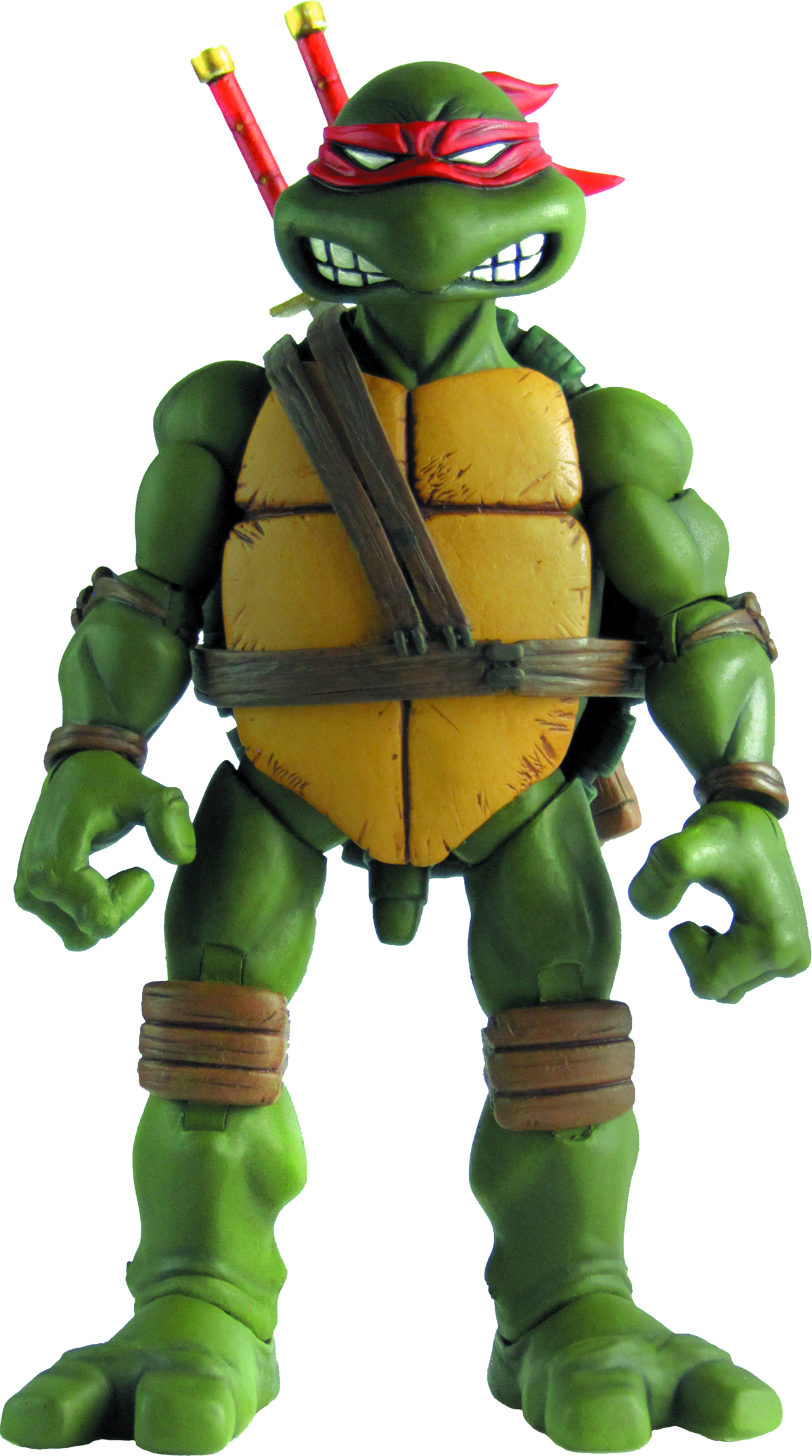Leonardo, the stoic leader of the Teenage Mutant Ninja Turtles, for the first time in 1/6-scale! Based on the original Eastman and Laird comic book, Leonardo stands approximately 11" tall and features over 25 points of articulation, interchangeable heads and hands, and weapons and accessories taken right from the pages of the comic book! Accessories include 1 classic comic red mask head; 1 cartoon blue mask head; a dual katana and scabbards; and much more.
