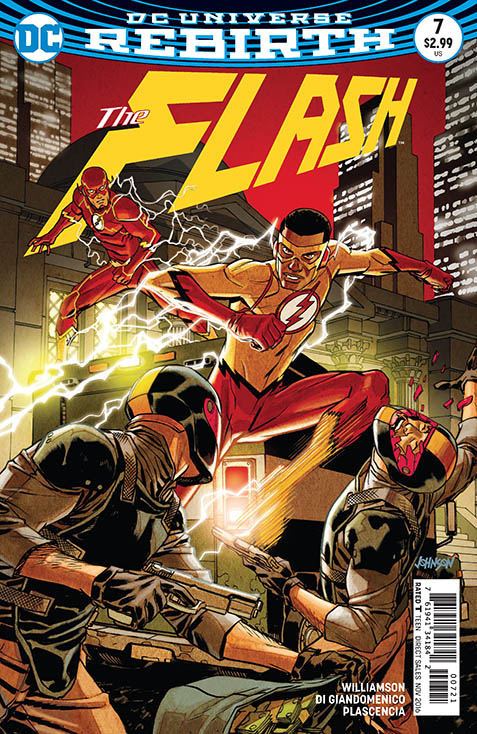 "LIGHTNING STRIKES TWICE" part 7! Still reeling from Godspeed's devastating attack, the beleaguered Flash realizes that to defeat this menacing new foe he must take away the Speed Force power from Central City's new citizen speedsters. There's only one problem: they don't want to give it back.