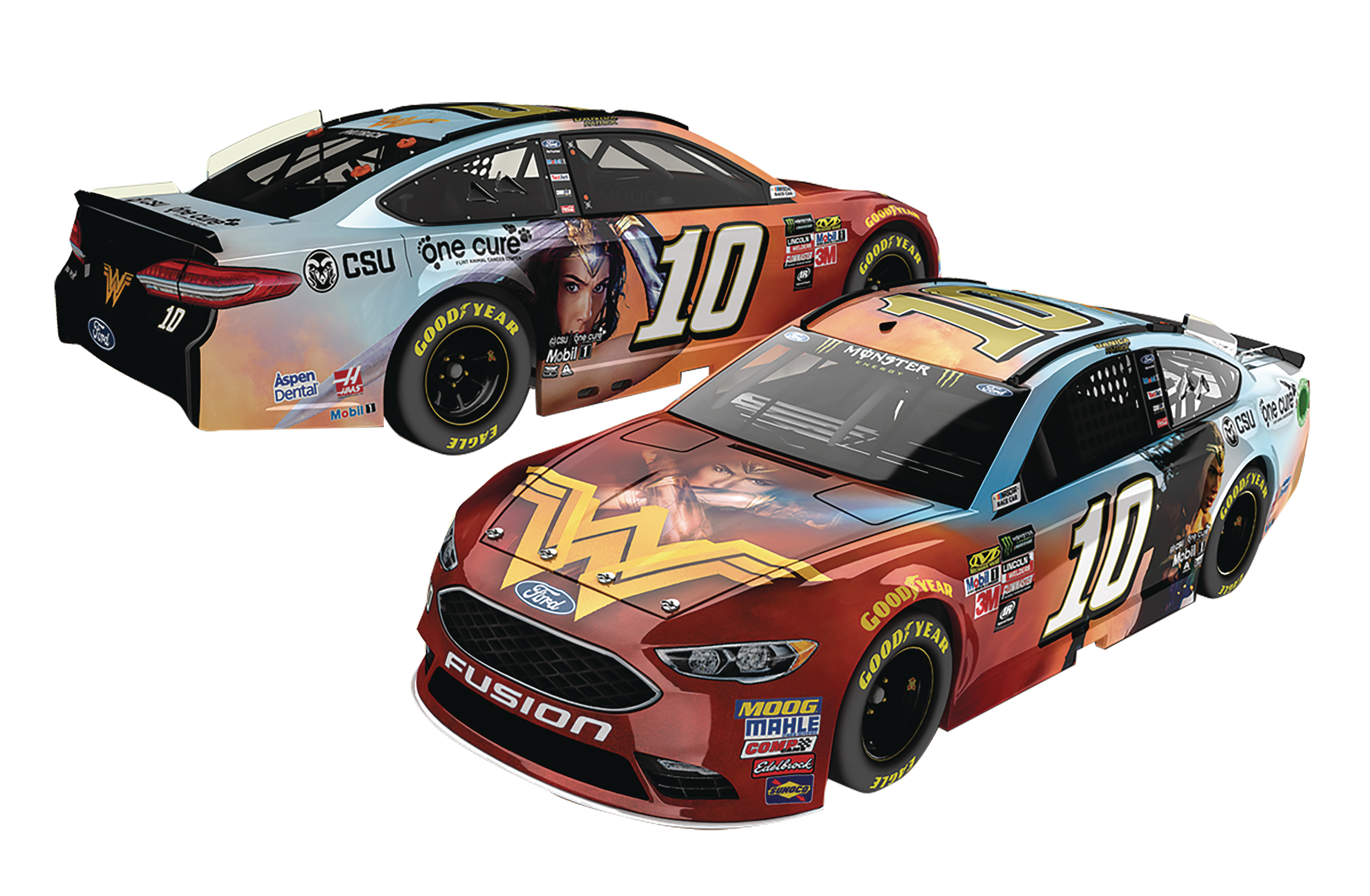 From Lionel Nascar Collectables. Danica Patrick will have the strength of a warrior on her side when she gets behind the wheel of the No. 10 Ford Fusion this May. At Kansas Speedway on May 13 and Charlotte Motor Speedway during Monster Energy All-Star weekend, Patrick will drive the Wonder Woman/One Cure Ford Fusion. Now Patrick's fans can celebrate their hero's competitive spirit with the officially licensed Wonder Woman die-cast exclusively from Lionel!