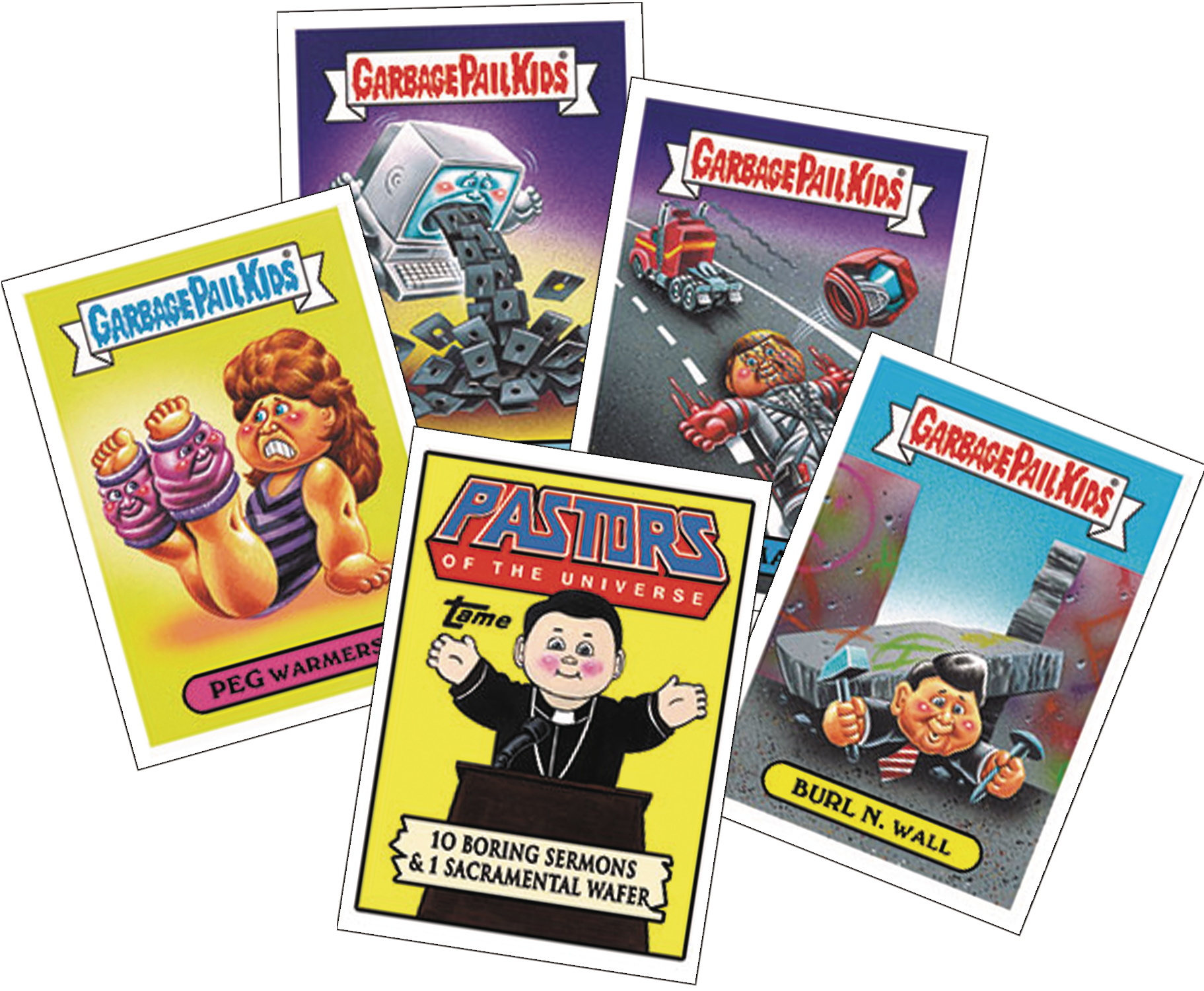 The Garbage Pail Kids are skewering the iconic decade from which they were born! "We Hate the '80s" features all-new art, parodying cartoons, toys, TV, films, video games, fashion & more, broken down into genre-specific subsets. This set features180 Themed Base Sticker Cards with 90 A & B names featuring all-new art! 9 cards per pack, 24 packs per box.