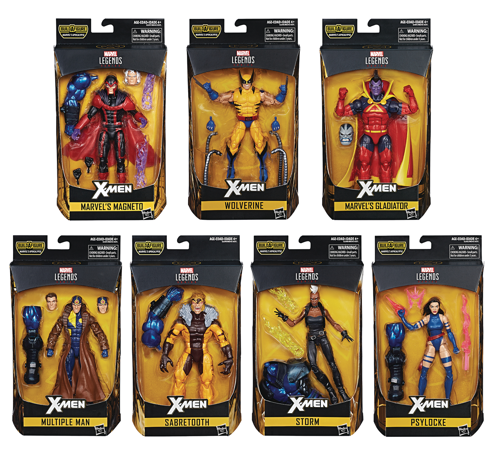 X-Men Legends Action Figures! The Apocalypse series features seven different 6" scale figures, and each comes with a bonus piece for a build-a-figure Apocalypse. Window box packaging.