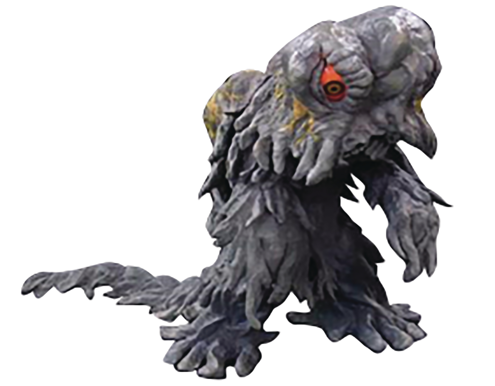 From PLEX. A PREVIEWS Exclusive! Hedorah, the living pollution monster from 1971's Godzilla vs. Hedorah, joins the Toho Large Monster series of figures from PLEX!  He's about 11" tall, and his distinctive, eerie eyes are made of clear parts. Don't miss this one!