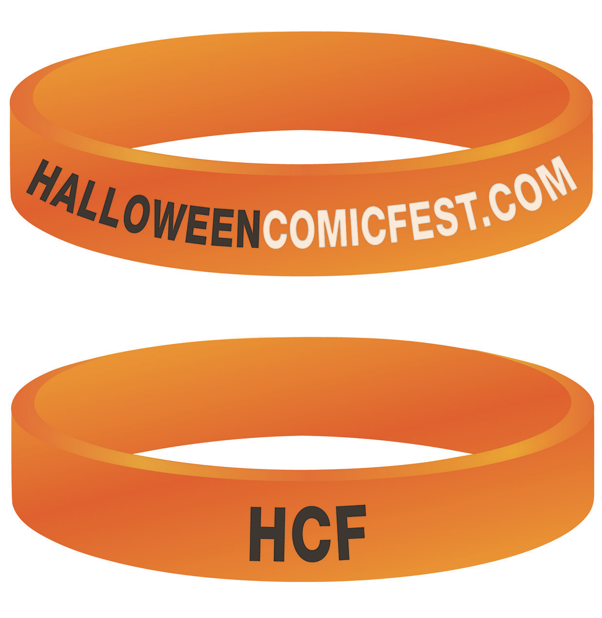 Made of silicone, these orange wristbands celebrate 2018's Halloween Comic Fest and bear the word "HCF" and the event's website URL. Wear it to show your love for comics and Halloween to the fullest!