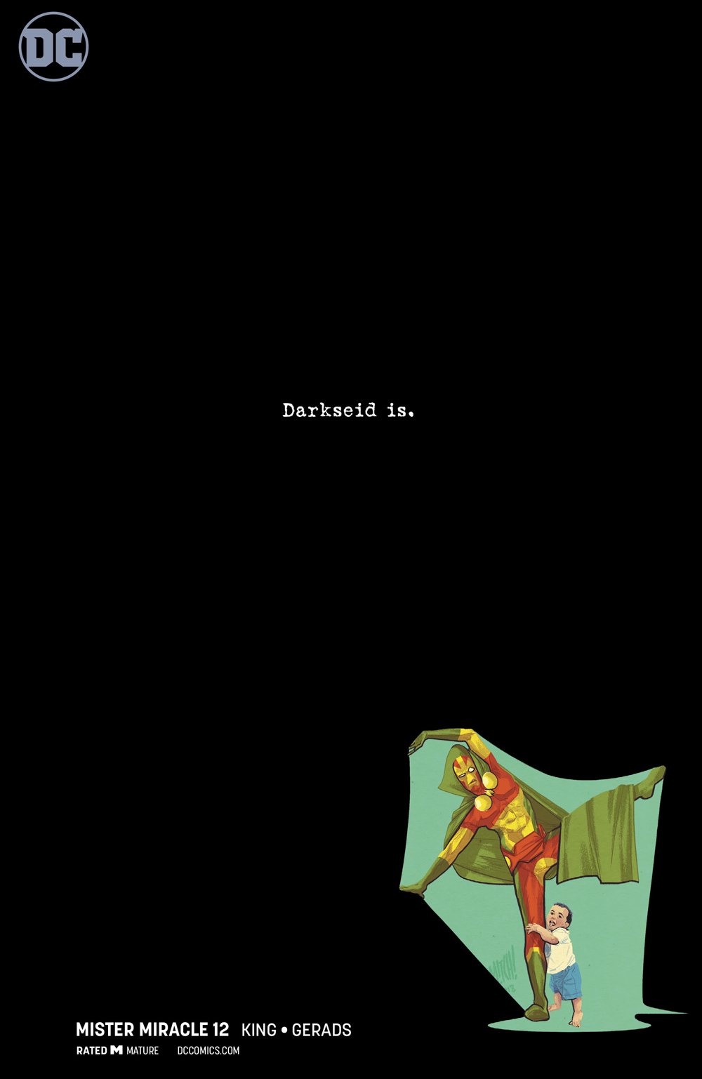 It'll be a miracle if you can get through this mind-bending conclusion with your sanity intact! After his epic battle with Darkseid, Scott Free sees life a whole new way: he's the new Highfather of New Genesis, and he's madly in love with his wife and child. But what if it's all a lie? Did Mister Miracle really escape death way back in issue #1? No one really knows but Tom King and Mitch Gerads!