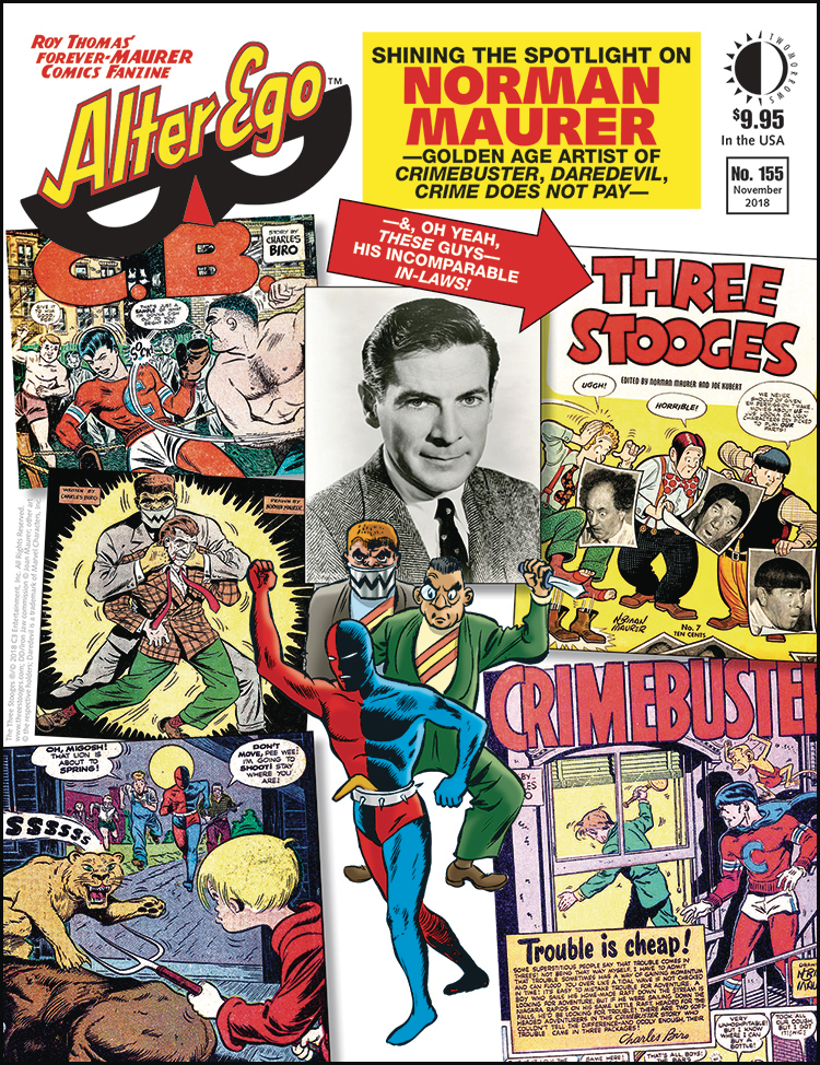 Boy Comics, and Daredevil-of St. John's 3-D and Three Stooges comics with fellow legend Joe Kubert of his 1960s movie starring the Three Stooges (moe Howard was Norm's father-in-law!), plus Maurer's work for Marvel, DC, Gold Key, Fox, et al! Then, learn about Larry Ivie's 1959 plans for a JUstice Society revival, more on John Broome, FCA (Fawcett Collectors of America), Mr. Monster in his Comics Crypt, and Bill Schelly!