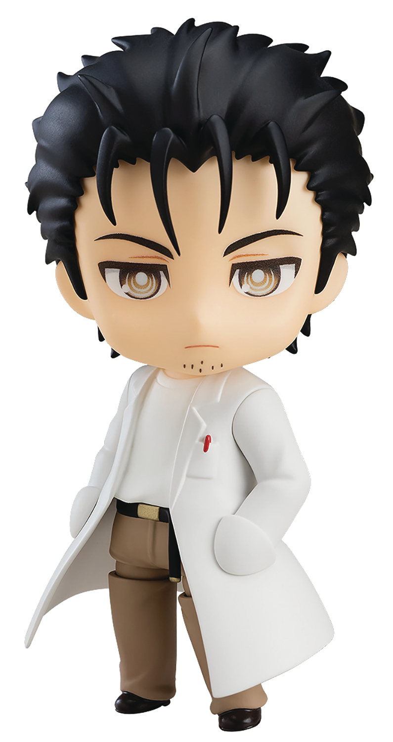 Steins;Gate comes a Nendoroid of the main character, Rintaro Okabe, based on the personality of his alternate name, Kyouma Hououin! He comes with three face plates including a standard expression, an exaggerated expression, as well as a closed-eyes expression. Optional parts include a cell phone, cyalume saber, as well as other things that appear in the series, so you can recreate your favorite scenes of the mad scientist!