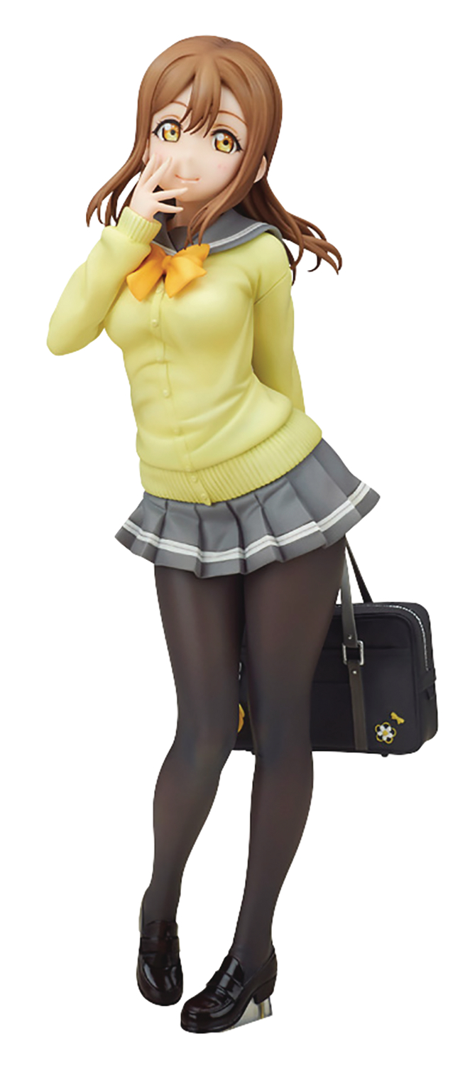 Love Live! Sunshine!! gets a figure release from Alter wearing her school uniform! She comes wearing a light yellow cardigan over her sailor top, as well as black stockings to keep her legs warm during the colder months of the year. Her pose is sweet and simple, but the detailing in her hair and clothing features the high quality that Alter is known. She even comes with an optional surprised expression so you can display her whichever way you like.