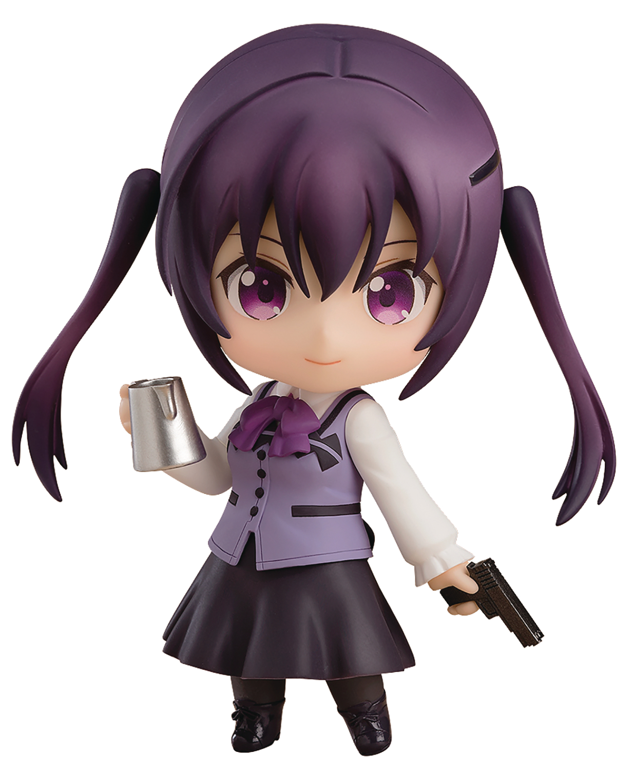 Rize! She comes with three face plates, including her confident standard expression, a commanding expression for when she's giving out orders, as well as a smiling expression with closed eyes! A milk pot, coffee cup, her model gun and the rabbit, "Wild Geese," are all included as optional parts! A plastic sheet based on a camera grid is also included!