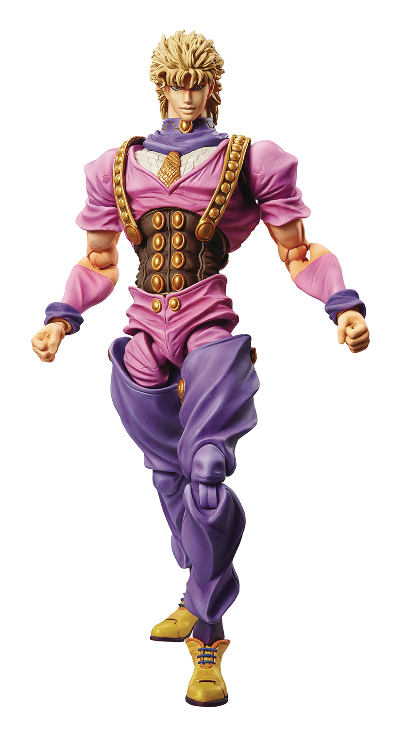 Dio is the ultimate recurring, fan-favorite villain out to sever the Joestar family line. This Dio action figure features the vampire in his younger years, when he still had his own body, and includes two different heads, several option hand parts, a long-stemmed rose, and a neck part to simulate the headless