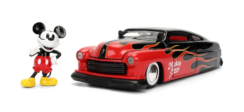 From Jada Toys. Get ready to cruise into the world of Disney with the Jada 1:24 Hollywood Rides Vintage Mickey and 1951 Mercury! This die-cast collectible features the beloved Mickey Mouse in his timeless, vintage style, standing proudly next to a beautifully detailed 1951 Mercury Coupe.