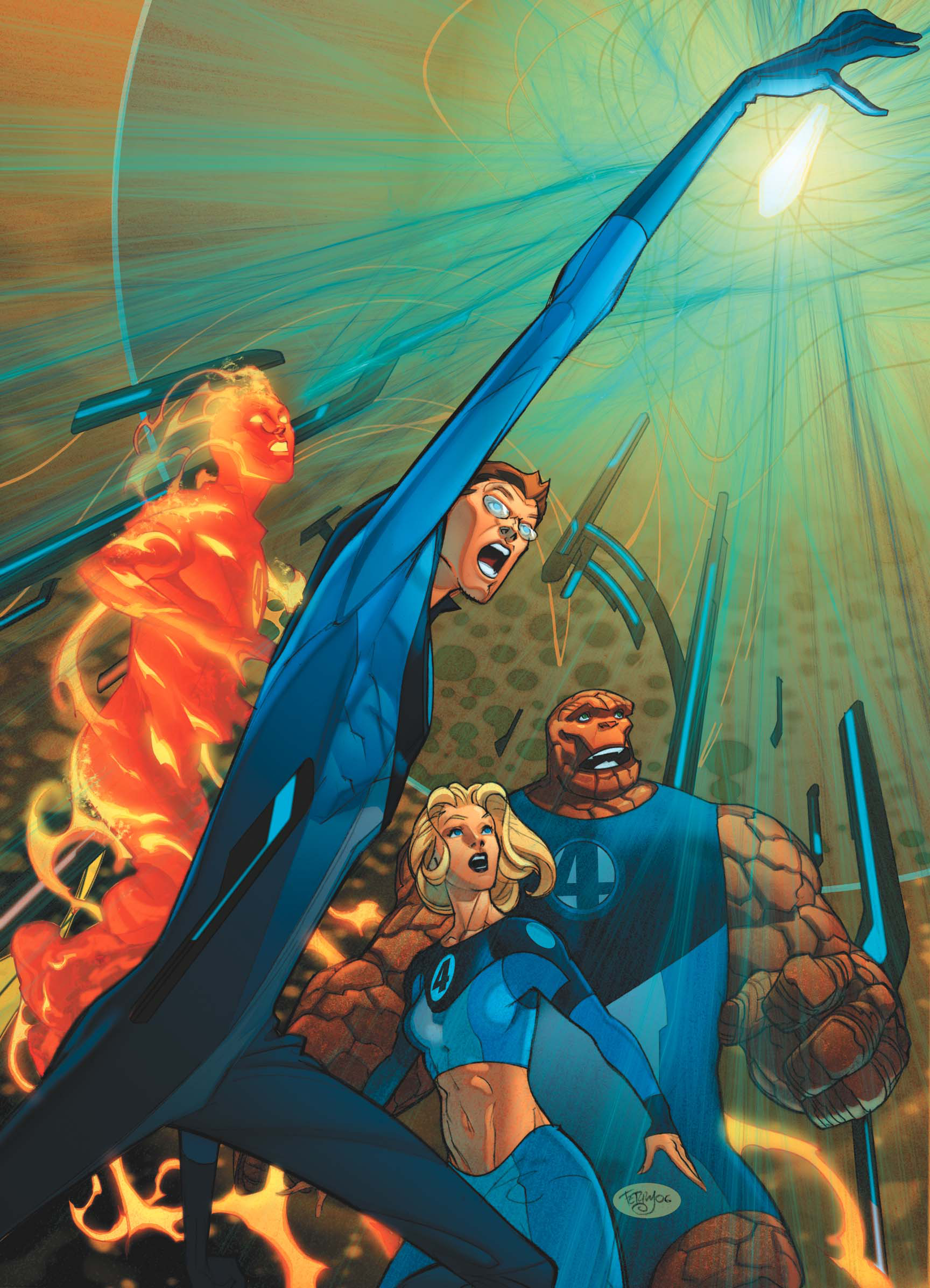Seed Nineteen-a bizarre name for the most bizarre characters ever to enter the lives of the F.F.: Threshold, Fountain, Magnificent Brute, Dreamcatcher. These incredible entities hold the key to a cosmic conflict that has raged for untold millennia and now involves our quarrelsome quartet. You've never seen anything like it! We promise. And it debuts our new creative team: Mike Carey on script and Pasqual Ferry on pencils!