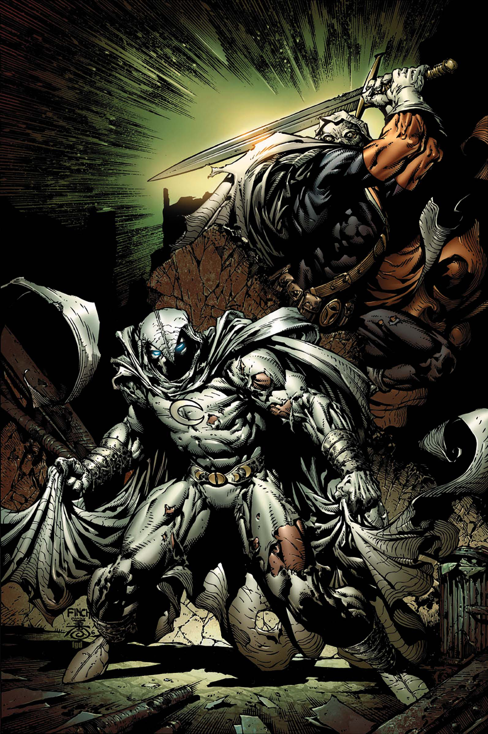 They promised Taskmaster that Marc Spector would be a sitting duck. When Taskmaster was done with his work, Spector would be battered, bruised, friendless and, most important, alone. Only one problem: Spector is not alone. He's got a friend. His name is Khonshu. And today, he's got Moon Knight's back. It's time for round two. Part 5 (of 6).