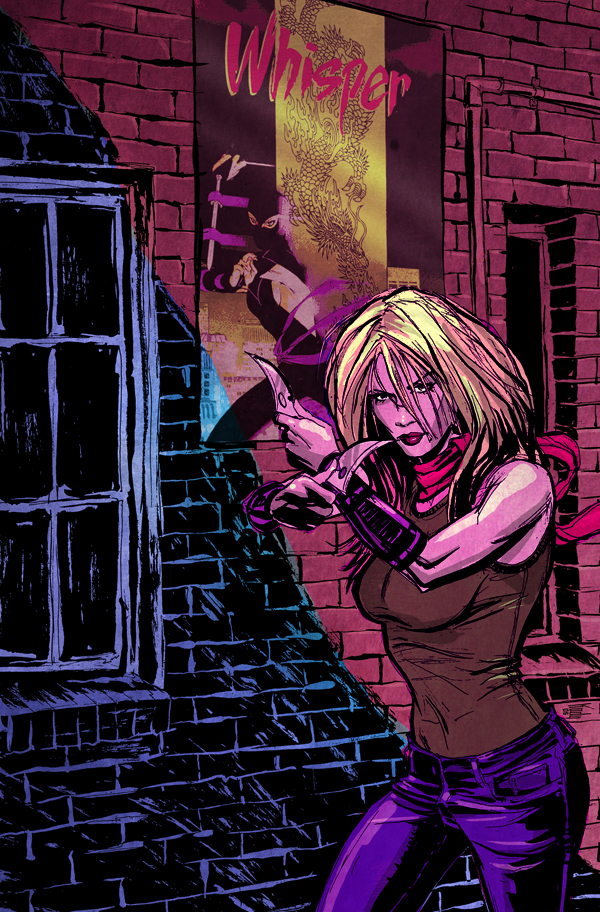 Whisper - who may or may not be the woman they think she is; a woman who's supposed to be dead, is very skilled and precise at violence, and seems to have useful gaps in her memory. Whoever she is, whatever her agenda may be, her skills make her invaluable to the man commanding the mission, and he's willing to use her until she runs out of uses! Cover by Kody Chamberlain.