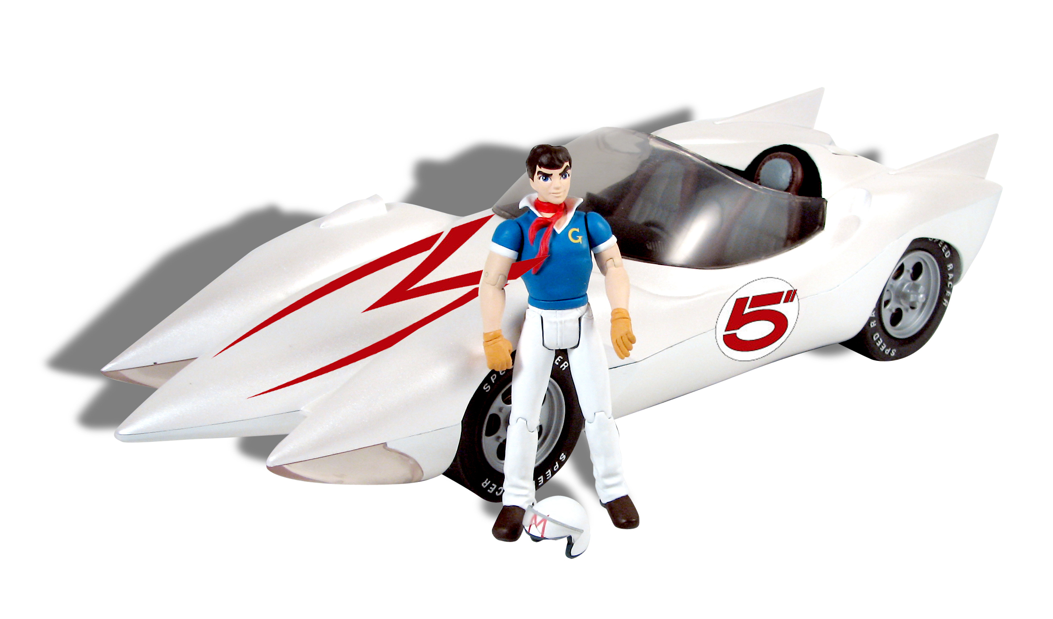 Speed Racer comes with the classic large deluxe Mach 5 vehicle, as seen in the series! The action figure measures 5" and comes with an animation DVD.