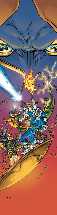 Retailers please note: This issue will ship with two covers by Scott Kolins that will ship in approximately 50/50 ratio. Please see the Previews Order Form for more information.