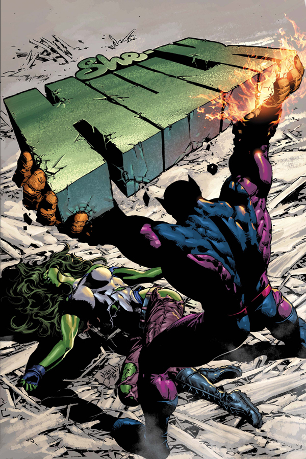 Okay, we know that Jazinda, She-Hulk's fellow bounty hunting partner, claims she's not part of the alien invasion...but can you ever trust a Skrull? Especially one that's the daughter of the infamous Super-Skrull? Months of accusations and mistrust come to a boil as our gamma-powered glamazon leaps into this year's biggest event!