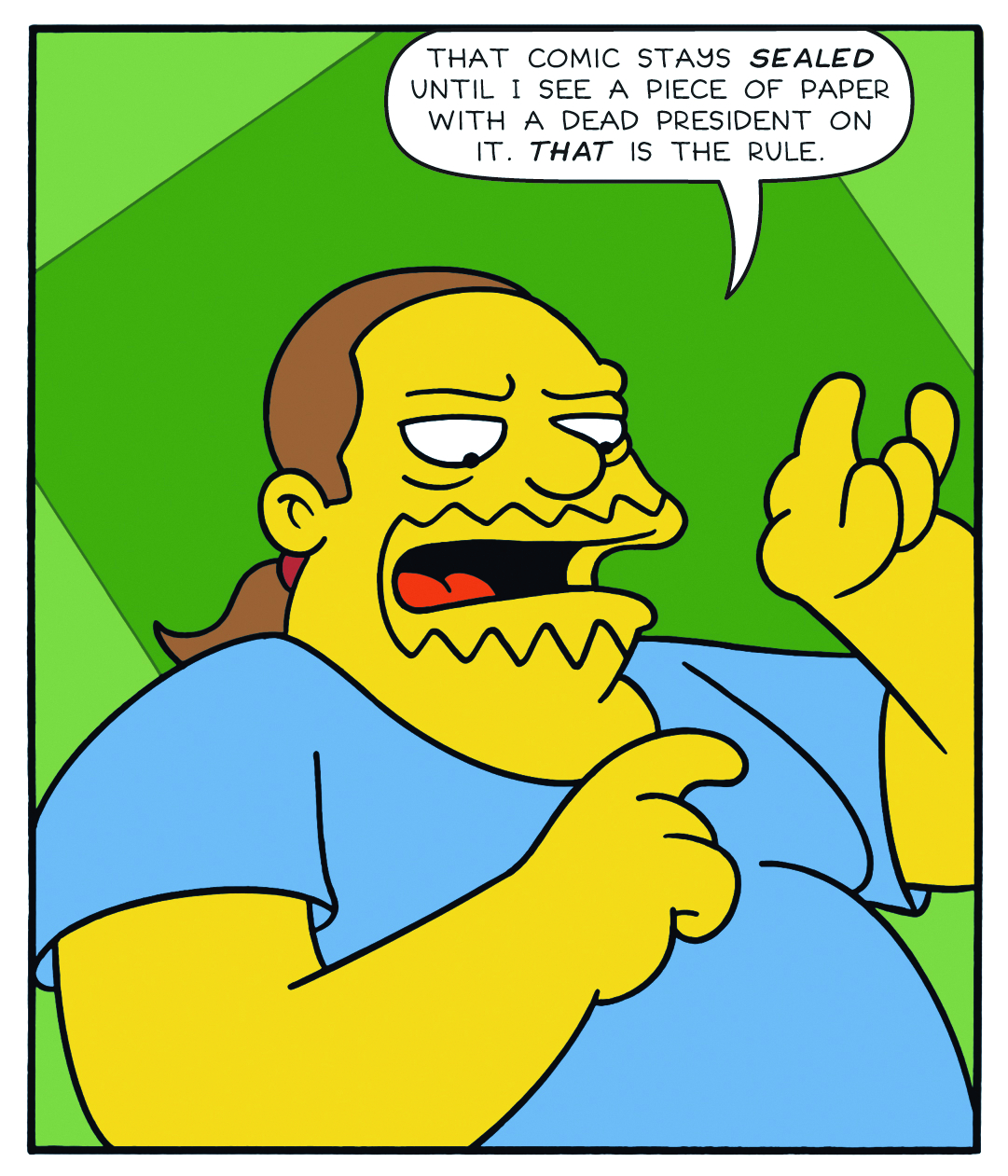 Bart has a "graphic" novel idea and pursues his lifelong dream of owning a comic book store, much to the dismay of the Comic Book Guy. Meanwhile across town, the Springfield Retirement Castle is on the brink of collapse. If it closes for good, where's Grampa to go? Then back on the homefront Marge puts her sharply-honed household know-how to work to solve a mystery. Simmer this summer with the Simpsons!