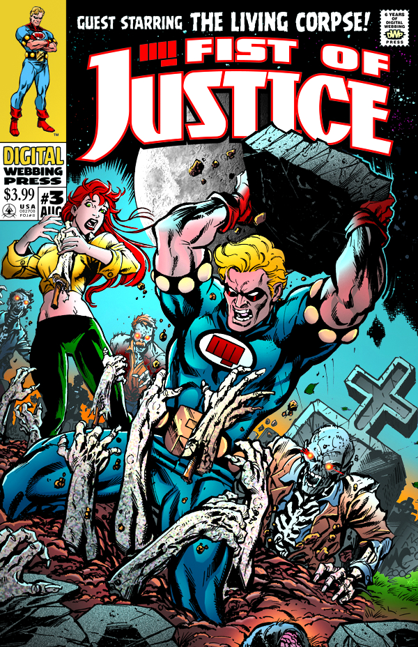 Now that's he's reclaimed his role as Charm City's defender, Fist of Justice faces his toughest opponent yet - his public image! But when he attends an event to woo the crowds, he finds it's been crashed by the living dead. It's up to Fist of Justice and his buddy Black Light to keep them from becoming the death of the party! Guest-starring The Living Corpse!