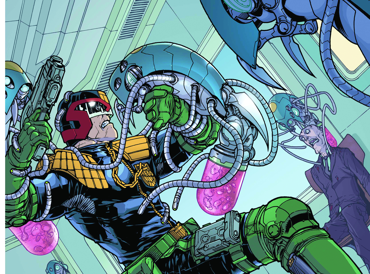 A British comics icon joins the mighty Megazine as Tank Girl returns to a UK monthly for the first time in over twelve years! An all-new ongoing story, "Skid Marks," by Alan Martin and Rufus Dayglo will introduce the anarchic anti-heroine to a new generation of fans. Elsewhere, there's carnage in the Cursed Earth for Judge Dredd, courtesy of John Wagner and Peter Doherty, and Psi-Judge Anderson is caught in a virtual trap in "WiiERD," by Alan Grant and Boo Cook. Plus interviews, reviews, and much more!
