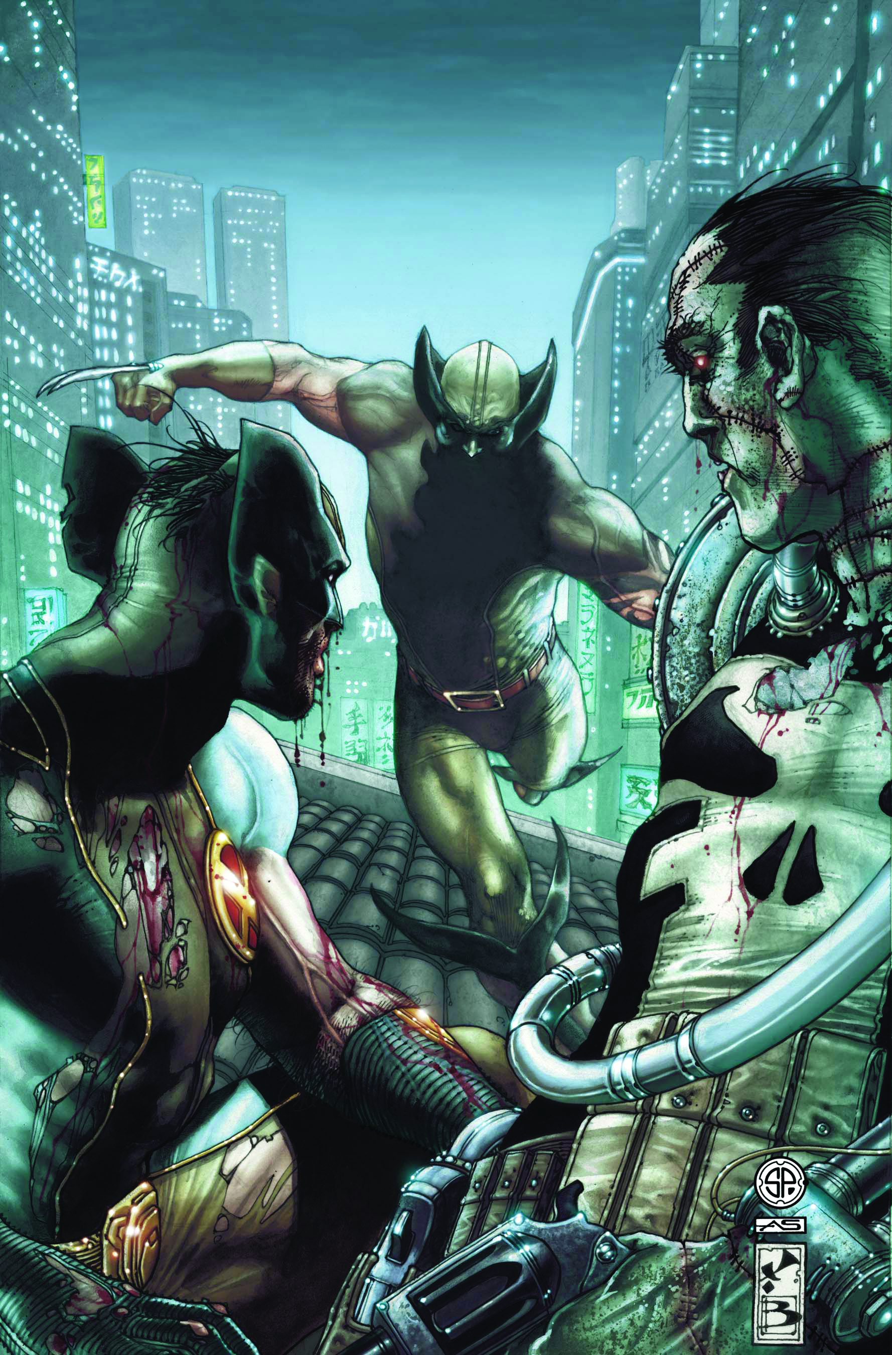 The Punisher and Wolverine must kill Daken! In hunting Dark Wolverine, Frank Castle has unwittingly given him the thing he needed most to complete his mission of retribution. On the rooftops of Tokyo, The Punisher, in a broken body, and his unwitting partner Wolverine, his healing factor negated, fight against a vengeful son reborn in the Exo-Mind! Dear lord is it going to get bloody.