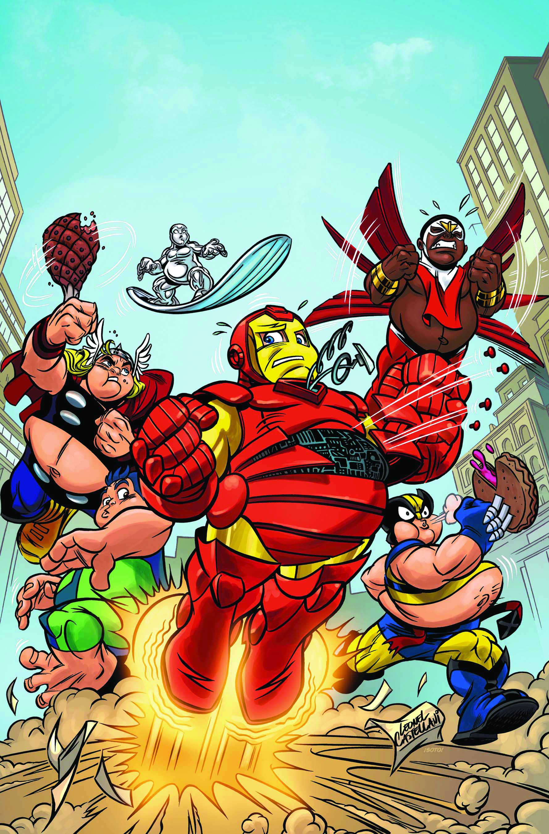 Discovering that different Fractals possess different qualities, the SQUADDIES are stunned when one falls nearby and imbues them with the power of...overweightedness! How long will it take them to save the day when they've all been supersized...?!Also, the Falcon takes us on "A Tour of the S.H.I.E.L.D. Helicarrier!" and Wolverine is forced to take Reptil and Falcon on a "Camping Trip!"