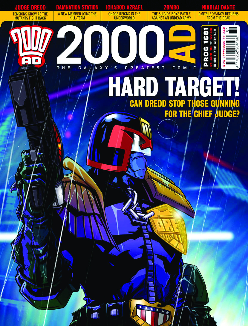 2000 AD is considered the Galaxy's Greatest Comic! All hell breaks loose at The Reef casino as battlelines are drawn and hitmen Sinister Dexter are caught in the middle; freedom fighter Bill Savage draws together his motley crew for an assault on the Volgan stronghold; Jack Dancer fights for his life and the fate of mankind in