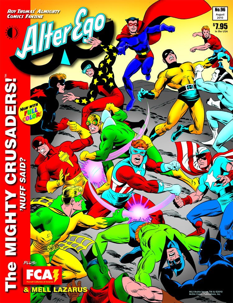 The Mighty Crusaders - the Archie group's 1960s challenge to Marvel Comics! This historical overview features vintage art and artifacts by Jerry Siegel, Paul Reinman, Simon & Kirby, and John Rosenberger - plus titanic tributes to the