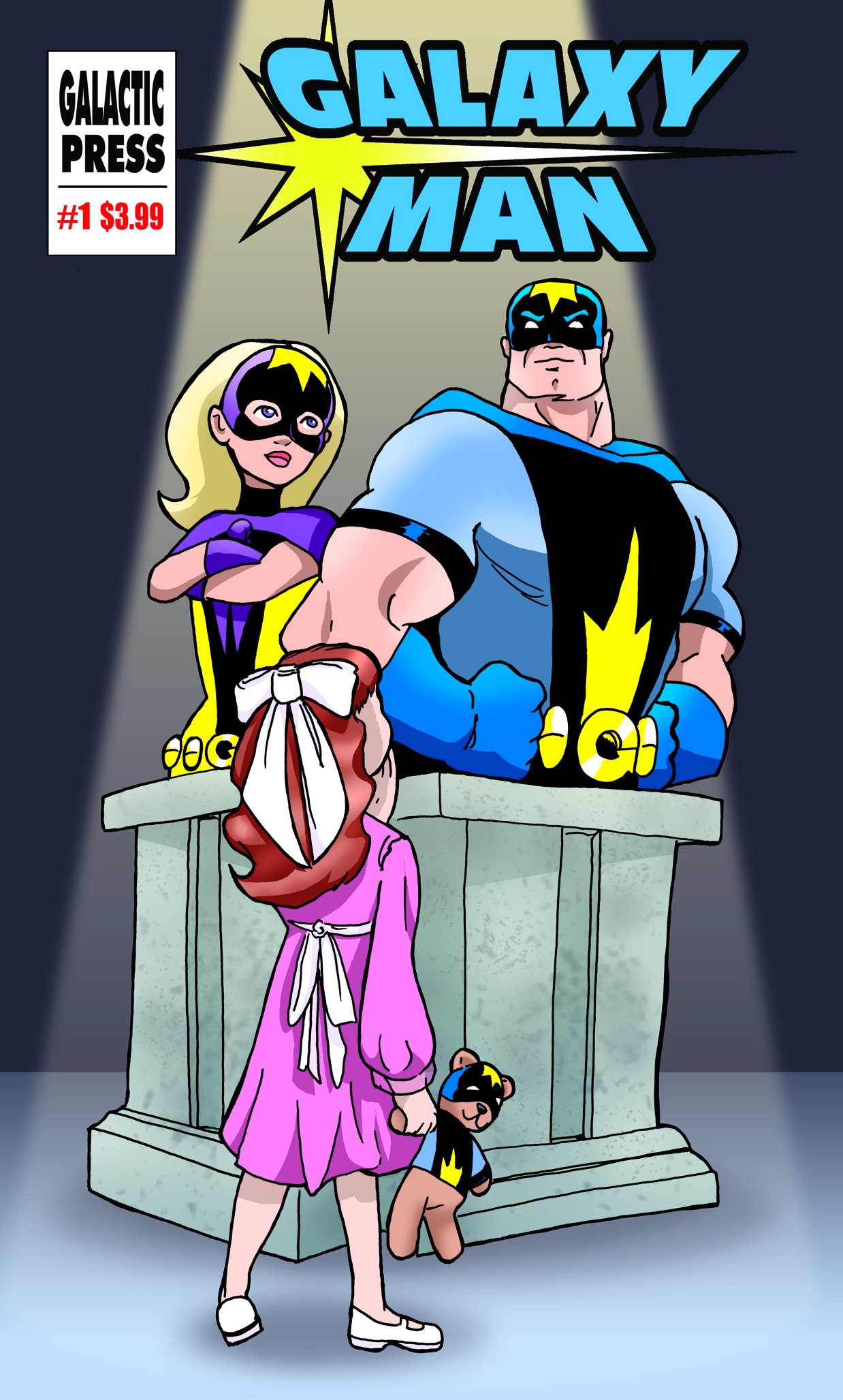 Galaxy Man! While battling skelasaurs in downtown Stellar City, he's joined by a mysterious sidekick named Cosmic Girl. Girl he helps him discover the real cause of all this chaos... the villainous Dr. Ross Rex!