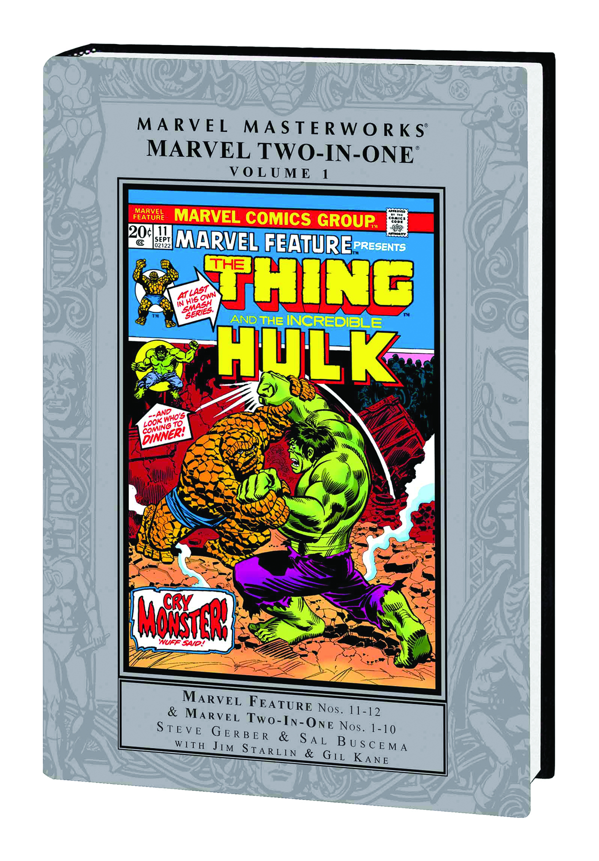 Two hundred volumes long and still going strong, the MARVEL MASTERWORKS celebrate Vol. 200 with the launch of Marvel Two-In-One! Yes, the ever lovin', blue-eyed Thing's own series collected is between hard covers at last! Begun as a MARVEL FEATURE tryout, Ben Grimm's headlining effort kicked off with Hulk and Iron Man battles (not to mention Thanos and the Blood Brothers), and then shifted into high gear with monster vs. monster - yup, it's Thing vs. Man-Thing! Rounding out the first ten issues are the revival of the Guardians of the Galaxy; revelations in the life of the Valkyrie; and adventures with Daredevil, Sub-Mariner, Ghost Rider, Thor and Black Widow - and before you know it, you'll be clamoring for more! Ya ain't a Yancy Streeter, are ya? Collecting MARVEL FEATURE (1971) #11-12 and MARVEL TWO-IN-ONE (1974) #1-10.