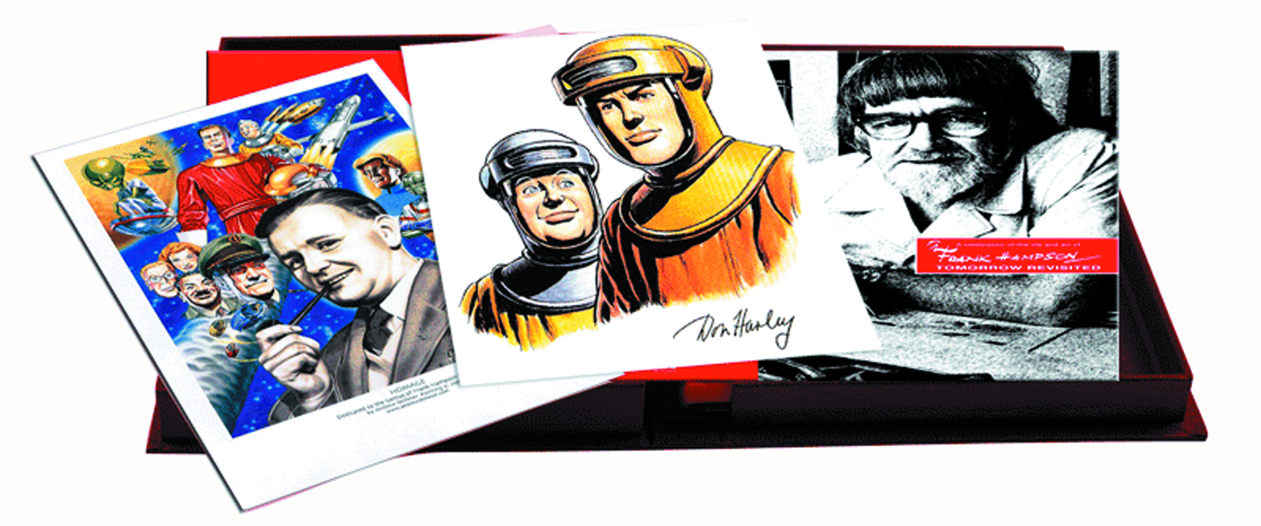 This leatherbound hardback full color contains over 200 pages housed in a beautiful presentation case. Exclusively with your purchase of the Deluxe Edition you will receive a unique illustration for each volume created specially for this edition by the legendary Eagle artist Don Harley, Plus a Limited Edition Print "Homage" Dedicated to the genius of Frank Hampson. This book is crammed with superb examples of Hampson's best work, printed from original art boards, so you can see all the amazing detail and painstaking back-grounds Hampson was so good at creating. These amazing strips are printed for the first time, together with backgrounds and some of the intended storylines.